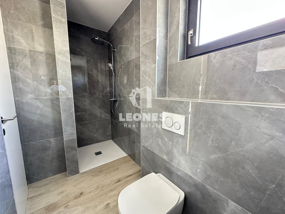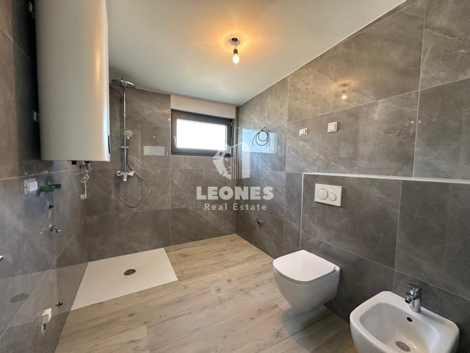 Ima 61,20m2 neto korisne površine + 8,20m2 natkrivene terase, 15,70m2 nenatrkivene terase i lođe od 3,05m2 dok ostala kvadratura pripada spremištu (7m2) te stanu pripada jedno natkriveno parkirno mjesto.