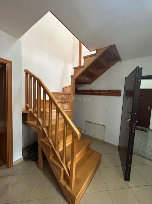 Na prvoj etaži nalazi se kuhinja s blagovaonicom i velikim dnevnim boravkom s izlazom na balkon, WC s vešerajem te dvije spavaće sobe. Na gornjoj etaži smještene su još dvije spavaće sobe i kupaonica.