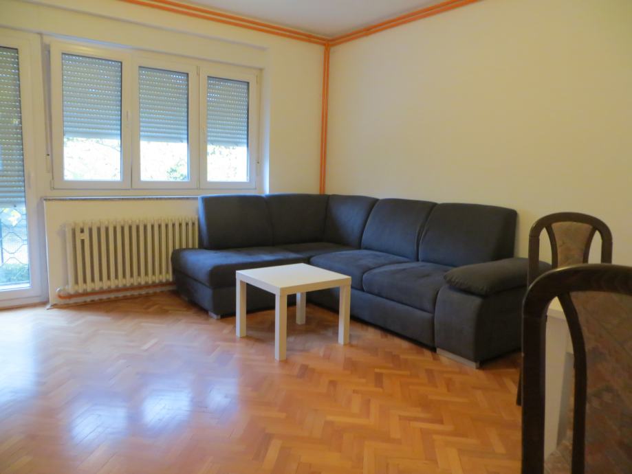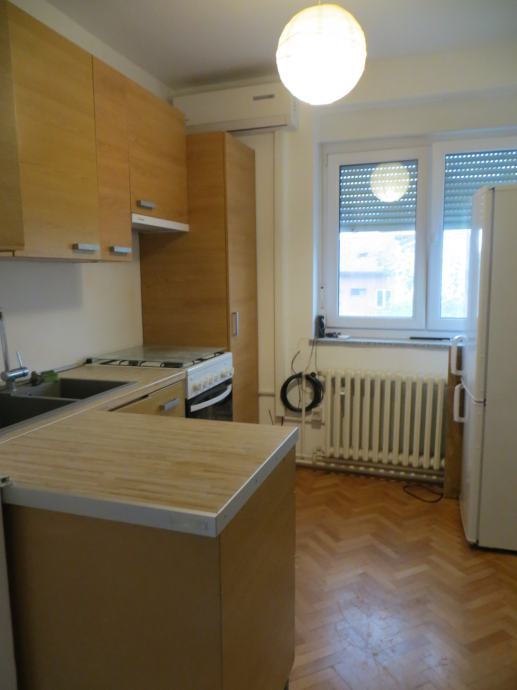 Stan se iznajmljuje polunamješten: ormari, bračni krevet, kutna garnitura, kuhinja s aparatima.