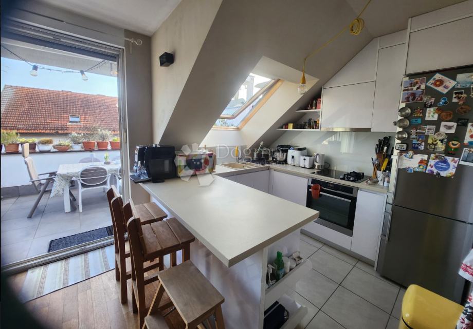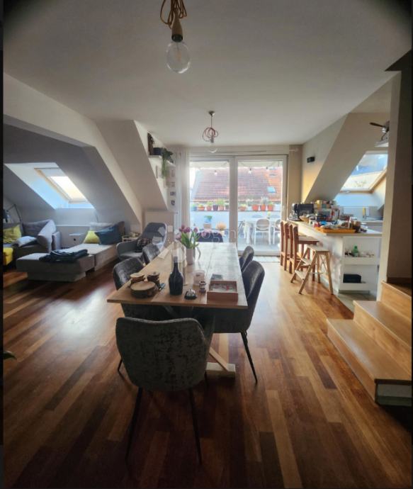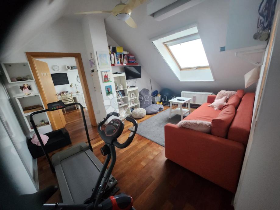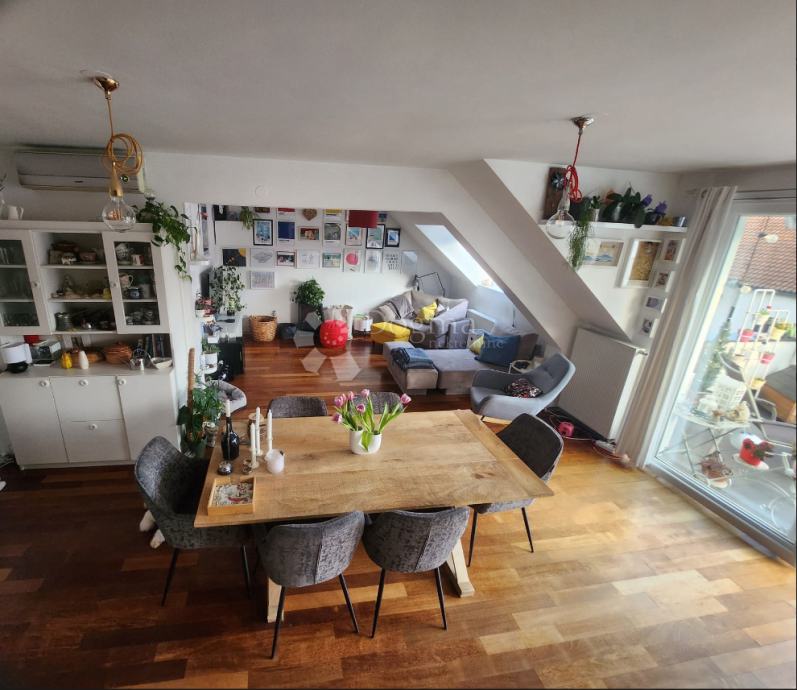 Stan je opremljen etažnim plinskim grijanjem (Viessmann kondenzacijski bojler), s tri klima uređaja, centralnim usisnim sustavom te kvalitetnom stolarijom (Velux krovni prozori i PVC stijene). Orijentacija sjever–jug osigurava konstantnu prirodnu svjetlost.