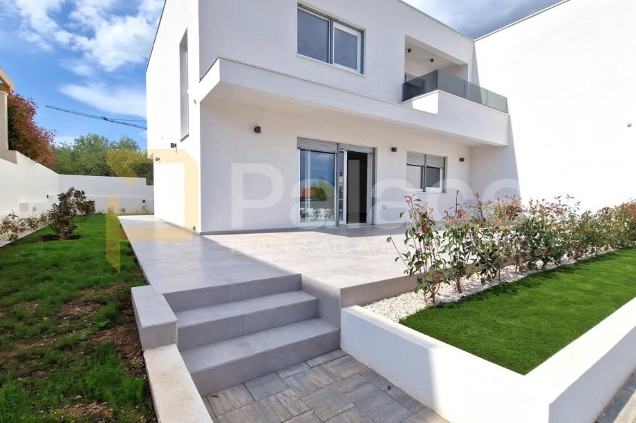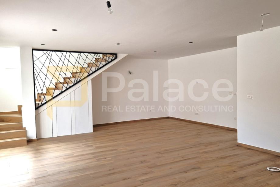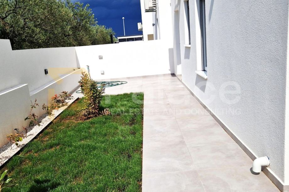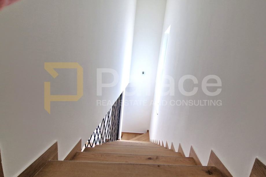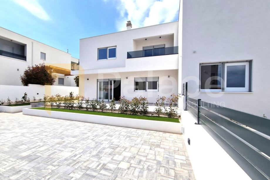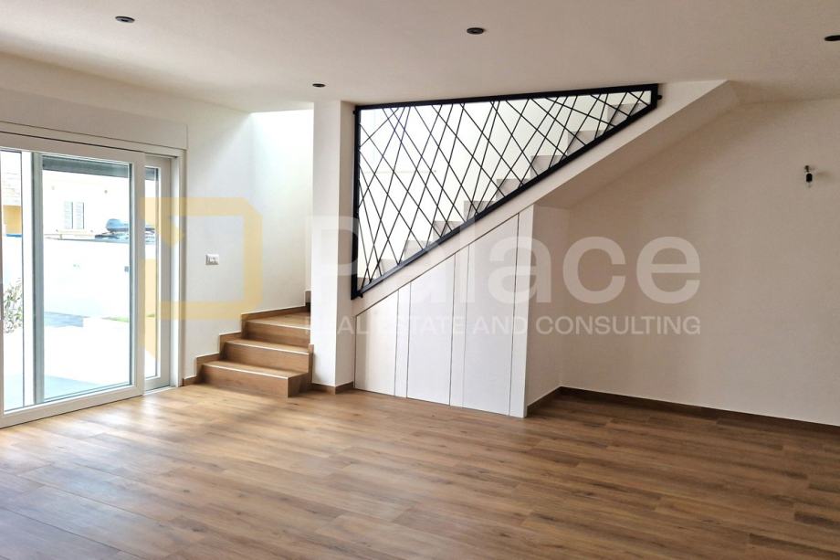 Stavlja se na prodaju nova dvojna kuća s dvoetažnim stanom ukupne stambene površine 133,73 m2 s velikim dvorištem površine 112 m2, u mirnom predjelu Vodica.