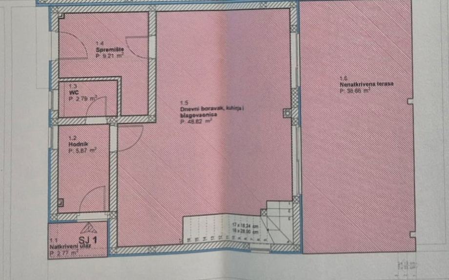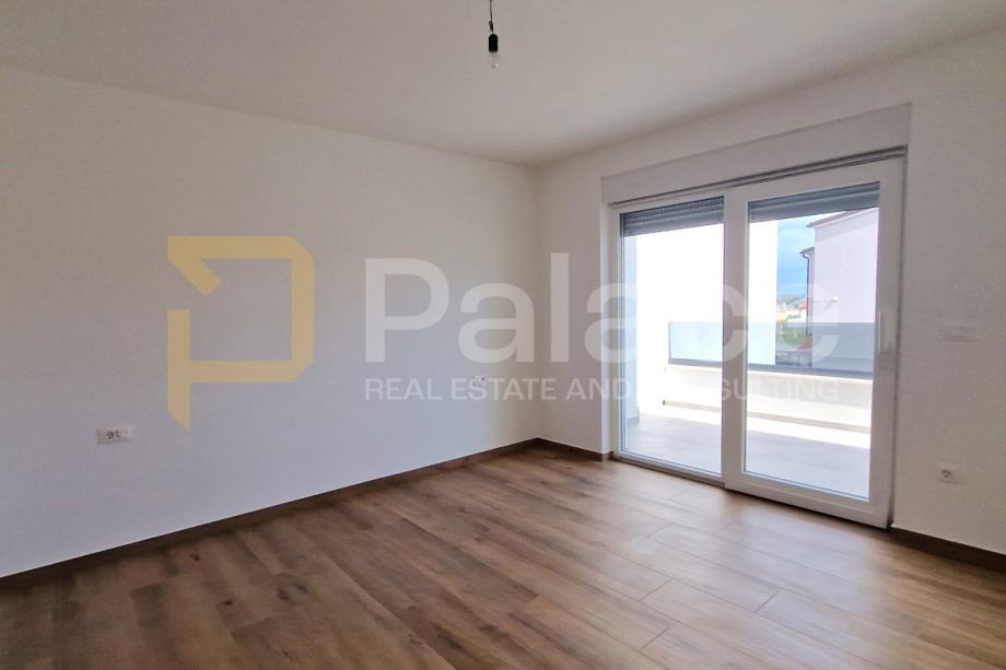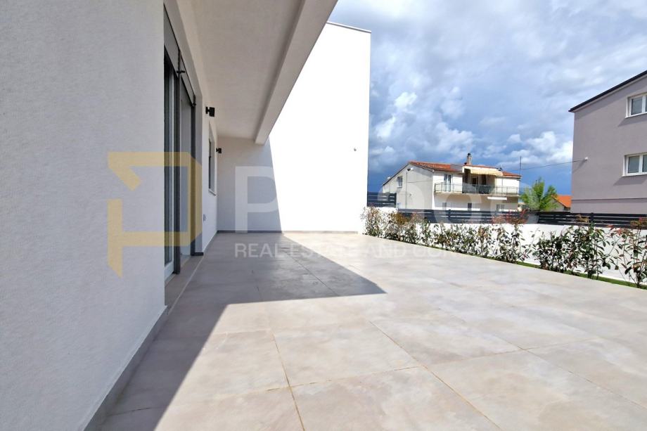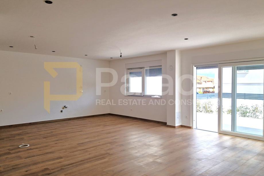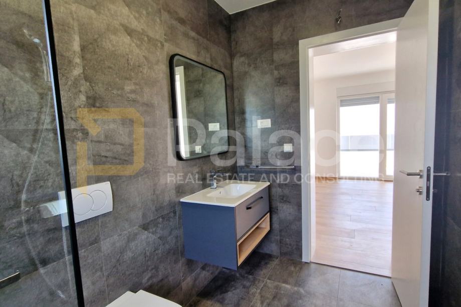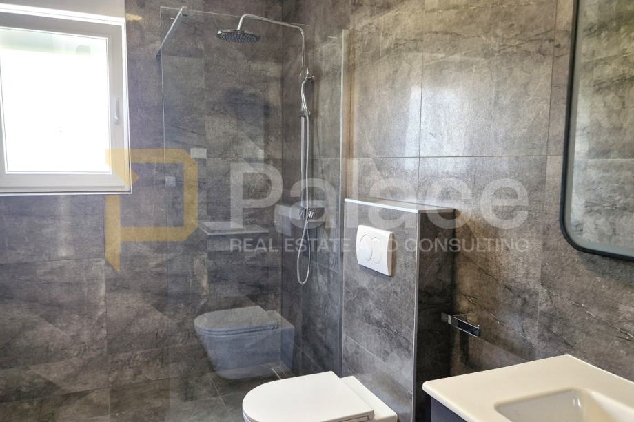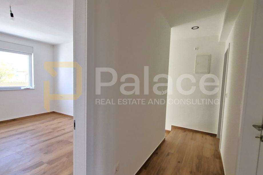 Stavlja se na prodaju nova dvojna kuća s dvoetažnim stanom ukupne stambene površine 133,73 m2 s velikim dvorištem površine 112 m2, u mirnom predjelu Vodica.