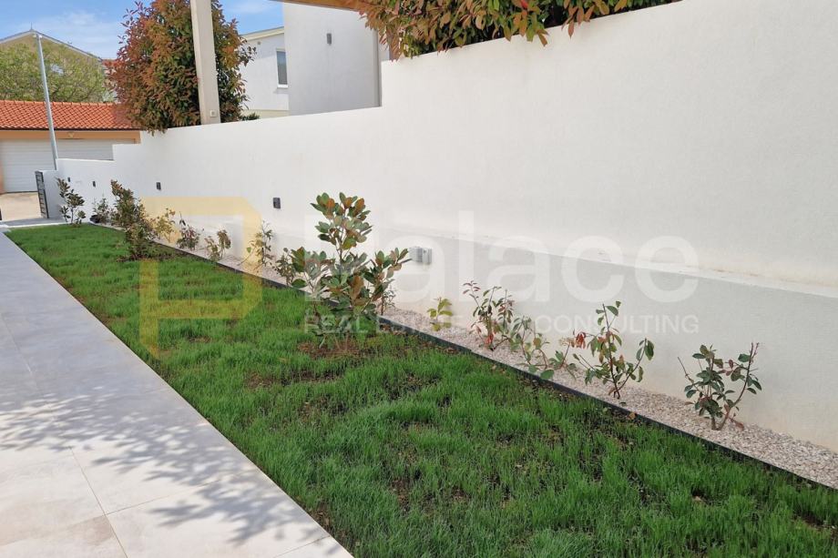 Ispred kuće je veliki parking, terasa za objedovanje, vrtna ograda je moderna aluminijska, pored i iza kuće su uređene vrtne gredice gdje se nalazi i prostor za gril koji je povezan s odvojenim ulazom u spremište i kuhinju. u Dvorištu se nalazi i instalacija za električnu punionicu vozila.