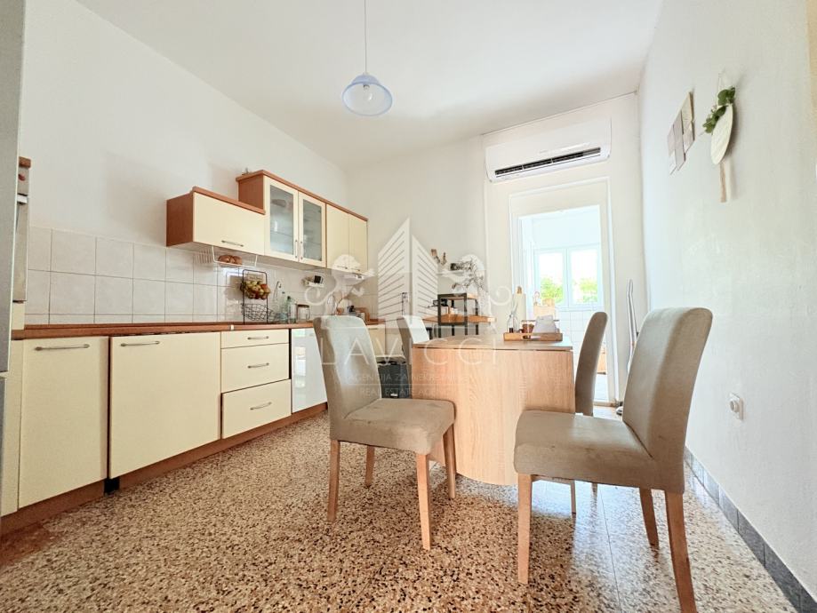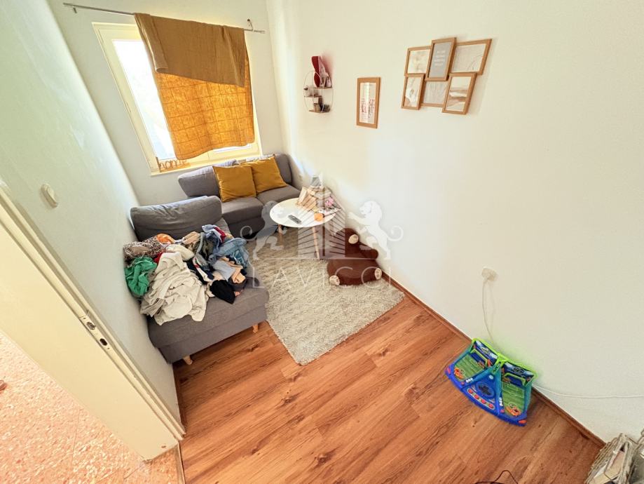 Prodaje se namještena. Postavljena je PVC stolarija s ALU roletama i ALU griljama. Podne obloge su kombinacija keramike i laminata.