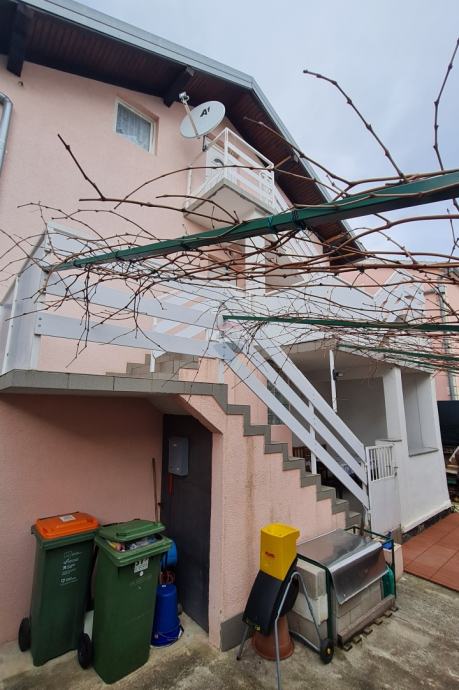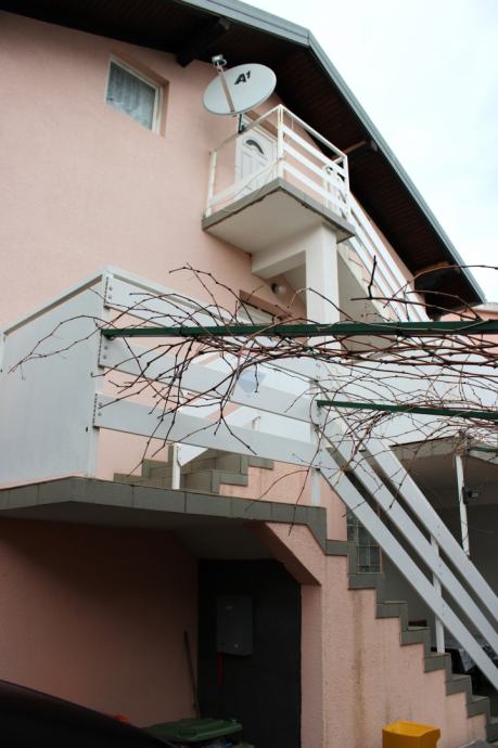 Vanjskim stepenicama se izlazi na kat, gdje je smješten dvosobni stan, a na potkrovlju je neuređen stan.