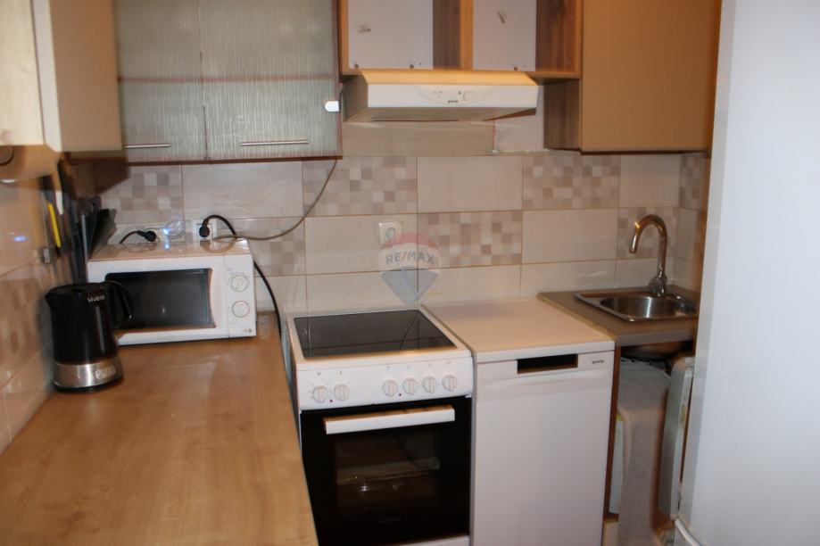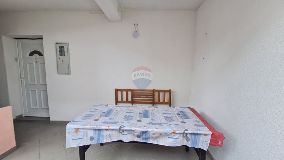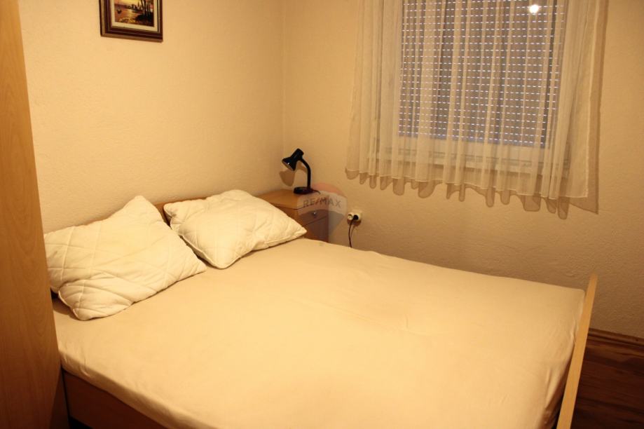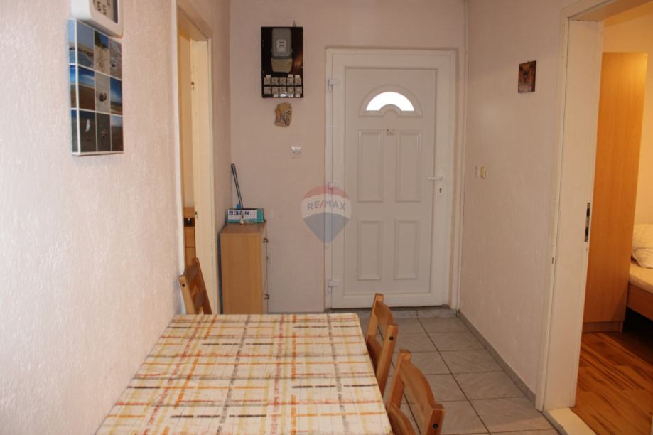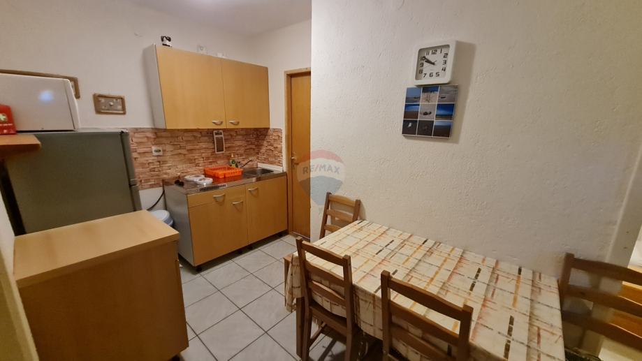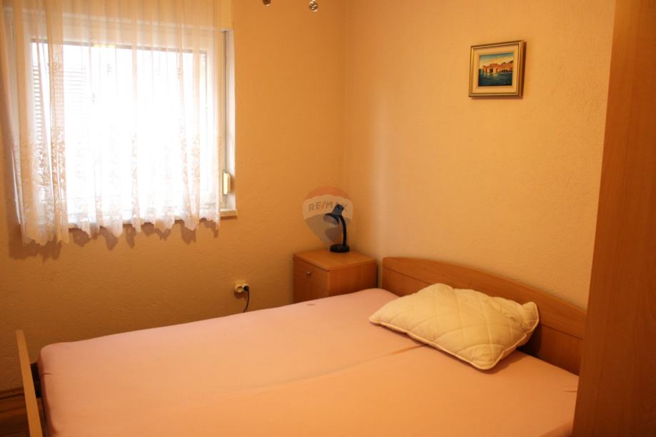 U prizemlju se nalazi dvosoban stan koji se sastoji od kuhinje s blagovaonicom, dnevne sobe, 2 spavaće sobe i kupaonice.