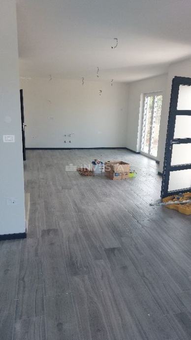 Prostrani dnevni boravak s kuhinjom i blagovaonicom u open space konceptu, stvarajući ugodan i prozračan prostor za druženje i obiteljska okupljanja
