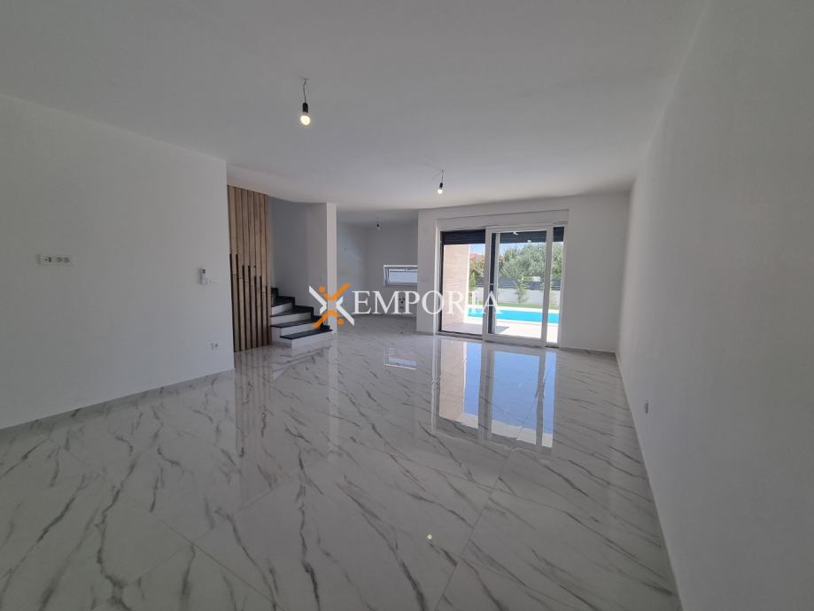 Kuća je spojena na kompletnu infrastrukturu.Lokacija nekretnineOtok Vir jedno je od najpoznatijih turističkih središta u Hrvatskoj. Otok Vir smješten je na krajnjem sjeverozapadu Zadarske županije. Okružen je Virskim morem i Povljanskim kanalom te brojnim manjim zaljevima. S kopnom je povezan mostom.Razvedenu obalu otoka Vira dugačku 31,43 km krase mnoge plaže, od pješčanih, šljunkovitih do kamenitih, stjenovitih, od napučenih uređenih plaža sa raznolikim sadržajima do intimnih uvalica, kao dijelom netaknute prirode. Plaže otoka Vira dijelom smještene uz borove šume s kristalno čistim morem, čine ovaj otok idealnim za obiteljski odmor.Osim turizma u ljetnim mjesecima, Vir je zimi idealna oaza mira za obiteljski život. Ima sve potrebne sadržaje: školu, dječji vrtić, trgovine, autobusni kolodvor, restorane i kafiće.Vir je od Zadra udaljen 26 km, dok je od najbližeg grada, Nina, udaljen 12 km.Ostale informacijeUkoliko ste ovu nekretninu vidjeli negdje drugdje po nižoj cijeni, ista cijena vrijedi i kod nas!https://www.emporia-nekretnine.com/property/kuca-h601-vir/____________________Auf der Südseite der Insel Vir steht eine schöne, moderne Doppelhaushälfte mit Swimmingpool zum Verkauf. Im Preis des Hauses ist eine Küche inbegriffen. Es liegt nur 260 m vom Meer entfernt.