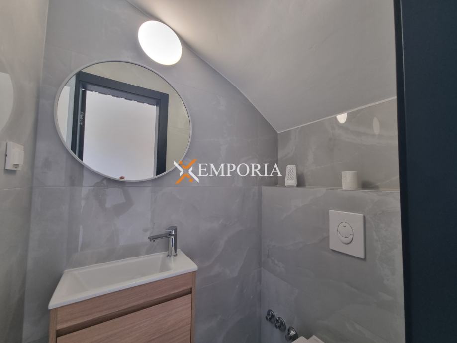 Budući da ovu nekretninu prodaje pravna osoba, odnosno firma, kupac ne plaća porez na promet nekretninama.OpremaKuća se gradi ciglenim termoblokom uz termoizolaciju od stiropora debljine 10 cm. Podne obloge su pločice i laminat. Prozori su od PVC materijala s troslojnim staklom, električnim roletama i komarnicima. Po jedan klima uređaj se nalazi u svakoj spavaćoj sobi i u dnevnom boravku. Ulazna vrata kuće su protuprovalna.