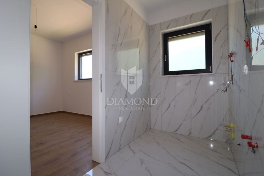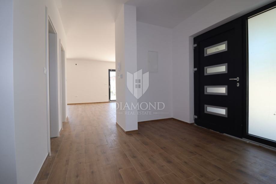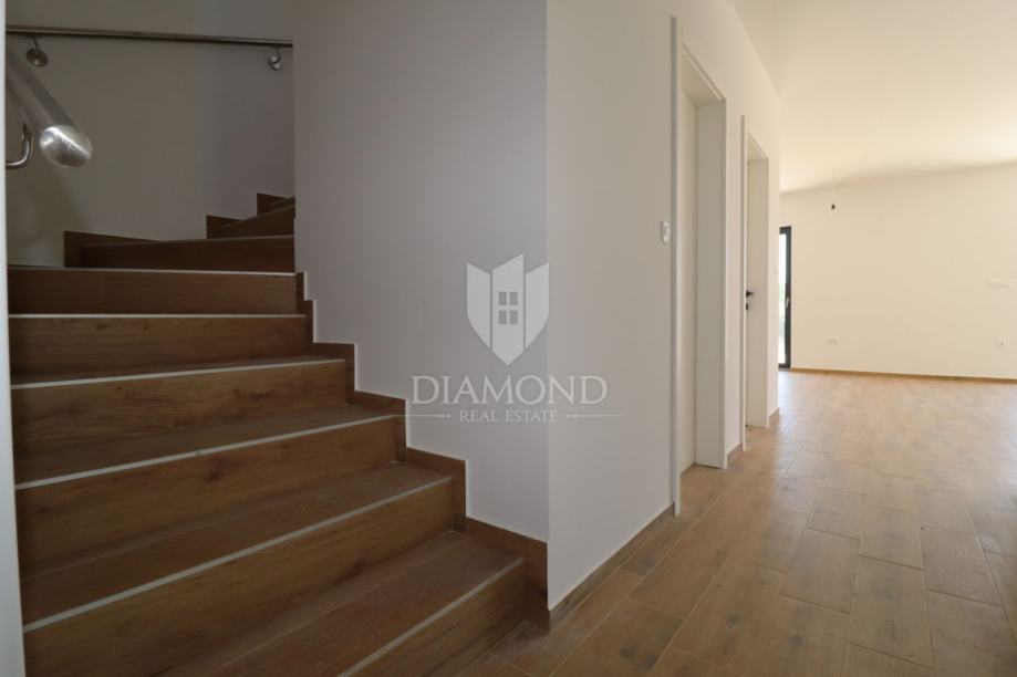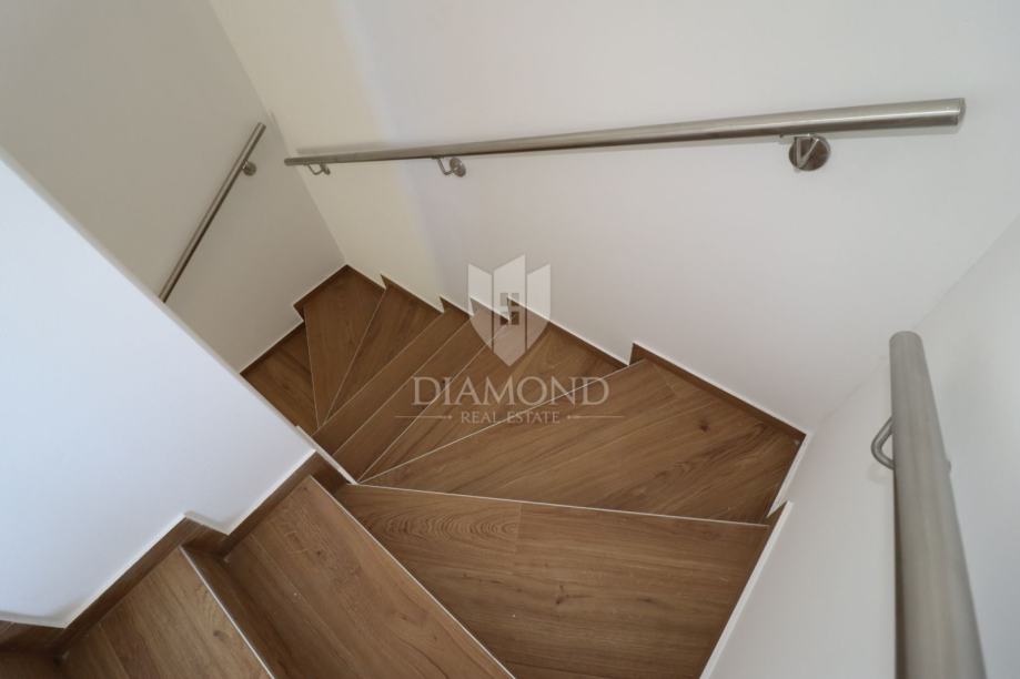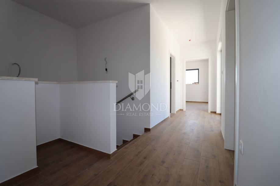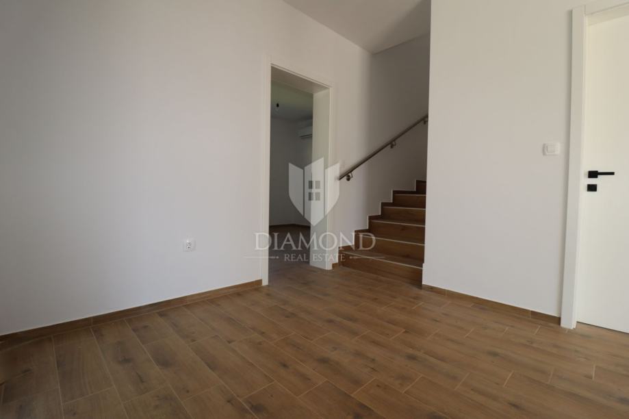 Iz ponude izdvajamo atraktivnu novogradnju moderne dvojne kuće ukupne površine 148 m², smještenu na zemljištu od 670 m². Nalazi se na mirnoj lokaciji s otvorenim pogledom na prirodu, dok se s kata može vidjeti i more u pozadini, što je čini izvrsnom prilikom za stanovanje ili investiciju u turistički najam.