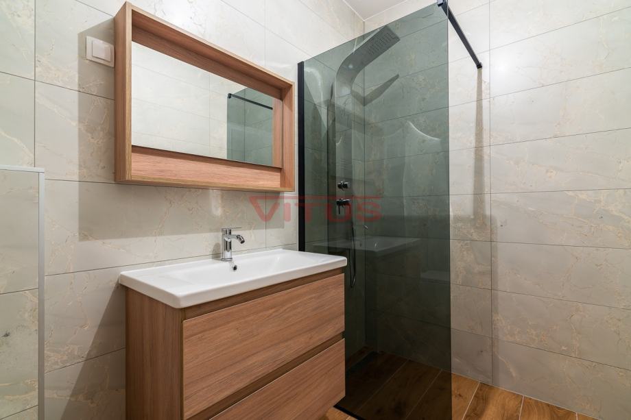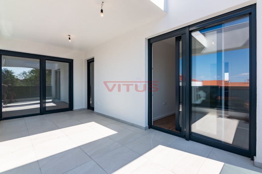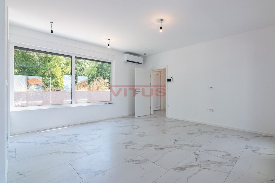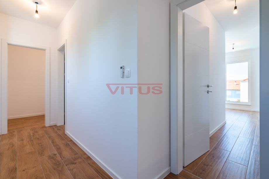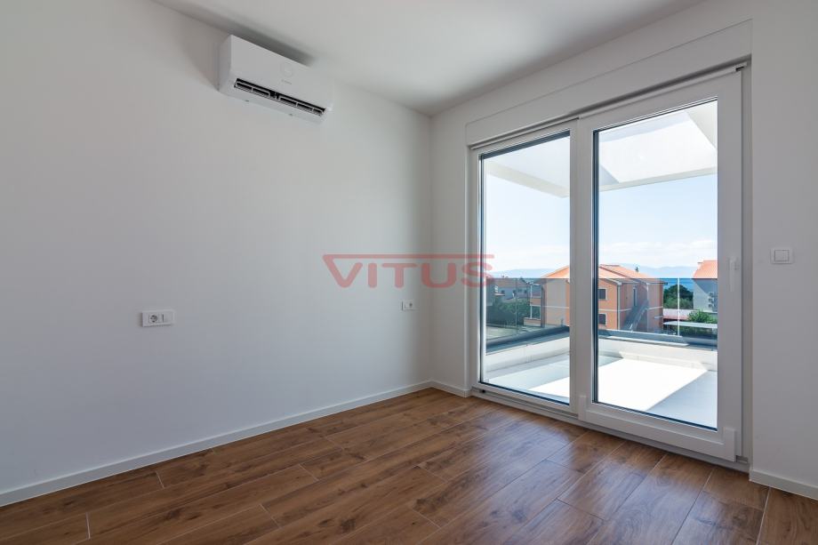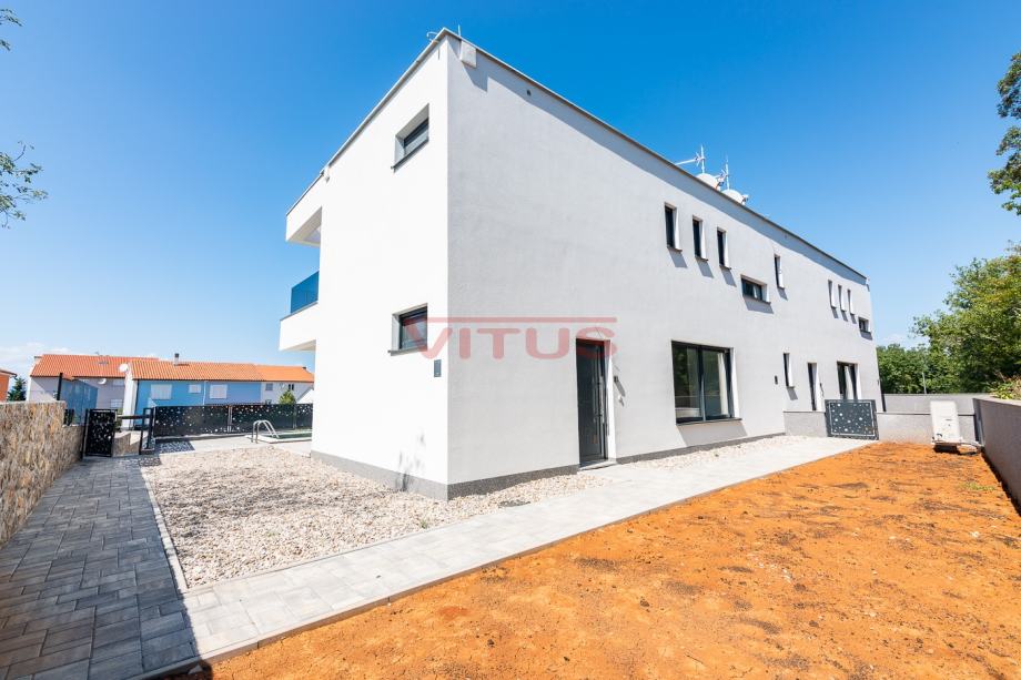 Otok Krk, Malinska! Nova dvojna kuća površine 143 m2 nalazi se na lijepoj lokaciji u Malinskoj, a sastoji se od prizemlja i kata. U prizemlju se nalaze ulazni prostor, kuhinja sa blagovaonicom i dnevnim boravkom, kupaonica i jedna spavaća soba. Iz dnevnog boravka se izlazi na natkrivenu terasu te okućnicu sa bazenom i sunčalištem. Na prvom katu se nalaze tri spavaće sobe, svaka sa vlastitom kupaonicom, te terasa sa pogledom na more. Kvalitetna gradnja i oprema koja uključuje: kvalitetnu keramiku i sanitarije, multi split klimatizaciju, podno grijanje na dizalicu topline, protuprovalna vrata i dva parkirna mjesta na okućnici. Odlična lokacija, 650 m od mora i centra Malinske! Nekretnina je u sustavu PDV-a, kupac ne plaća porez na promet nekretnina!