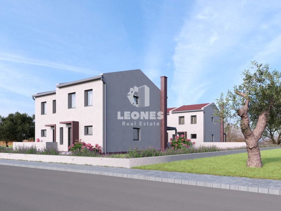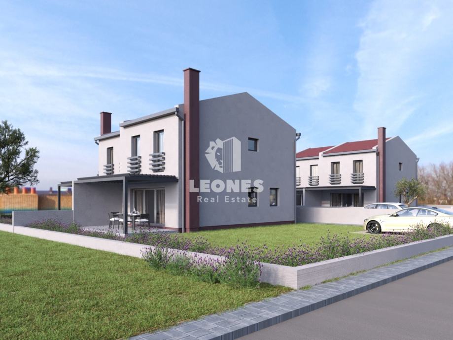 Prodaje se dvojna kuća s bazenom u okolici Buja, Kaštela. Površina kuće je 100 m2 dok je površina okućnice oko 250 m2. Kuća se sastoji od dnevnog boravka, kuhinje, 3 spavaće sobe i 2 kupatila. Grijanje je podno na istosmjernu struju dok je hlađenje na klima jedinice. Bazen je površine 18 m2.