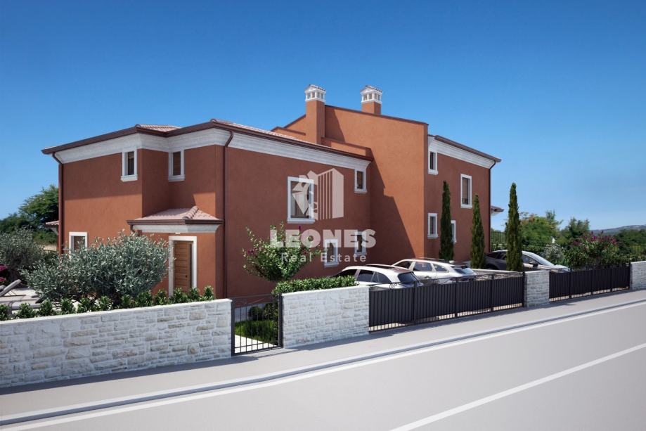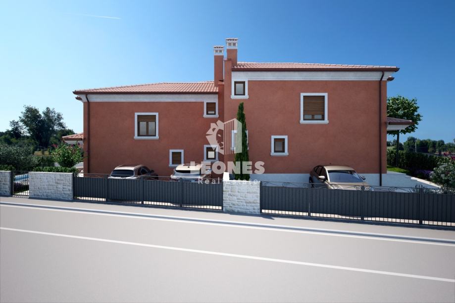 Prodaje se dvojna kuća s bazenom u okolici Momjana. Površina kuće je 165 m2 te se proteže se na dvije etaže. U prizemlju se nalazi dnevni boravak, kuhinja i blagovaona s koje se izlazi na natkrivenu terasu, kupatilo, spremište i ostava. Na katu se nalaze 3 spavaće sobe, 2 kupatila, tehnička soba te velika natkrivena terasa. Na okućnici od oko 245 m2 smješteni su bazen površine 25 m2 sa sunčalištem, pomoćni objekt od 25 m2 te 2 parkirna mjesta.
