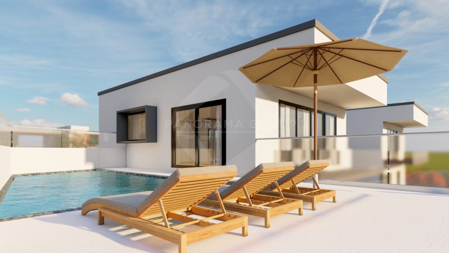 Kuća nudi 130 m2 pažljivo osmišljenog prostora, privatni bazen od 24,5 m2, te dva parkirna mjesta.