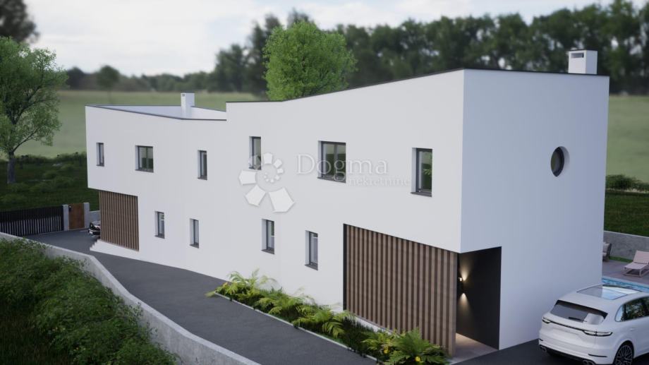 Na izvrsnoj lokaciji, nedaleko od prekrasnih plaža, nalazi se moderna dvojna kuća koja je trenutno u fazi izgradnje.