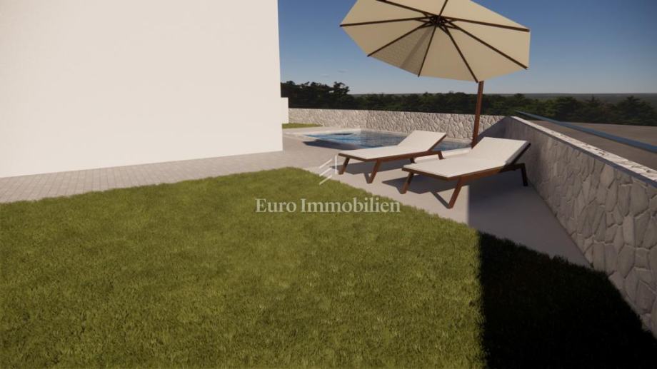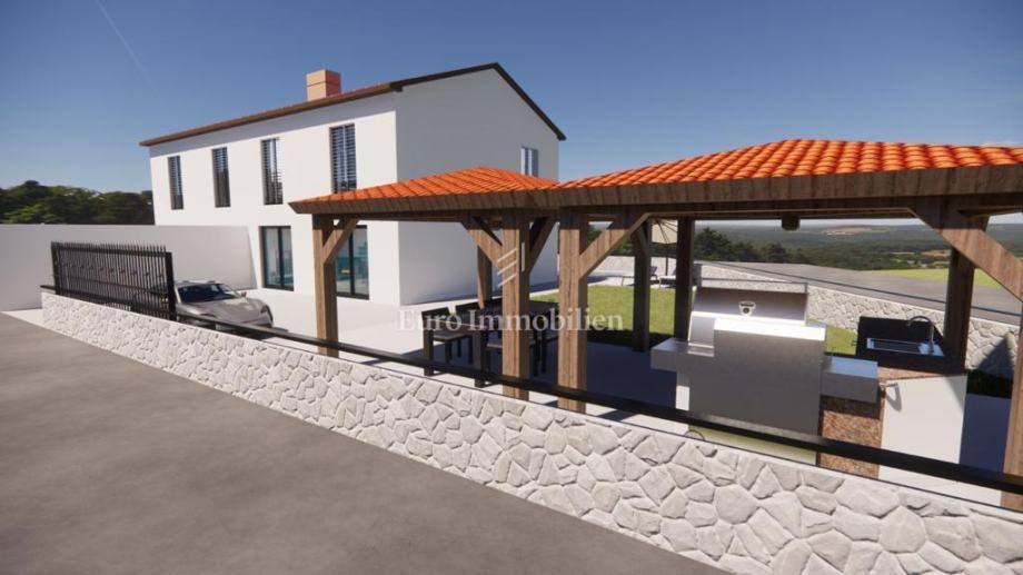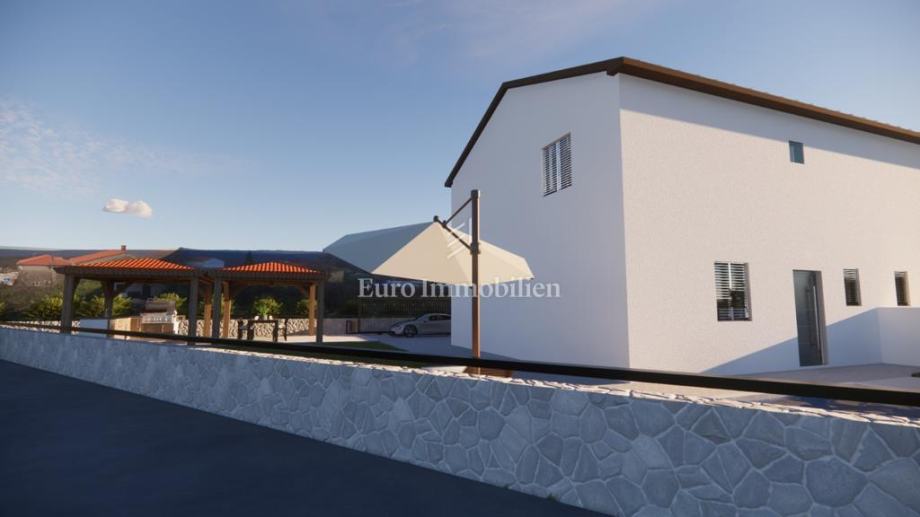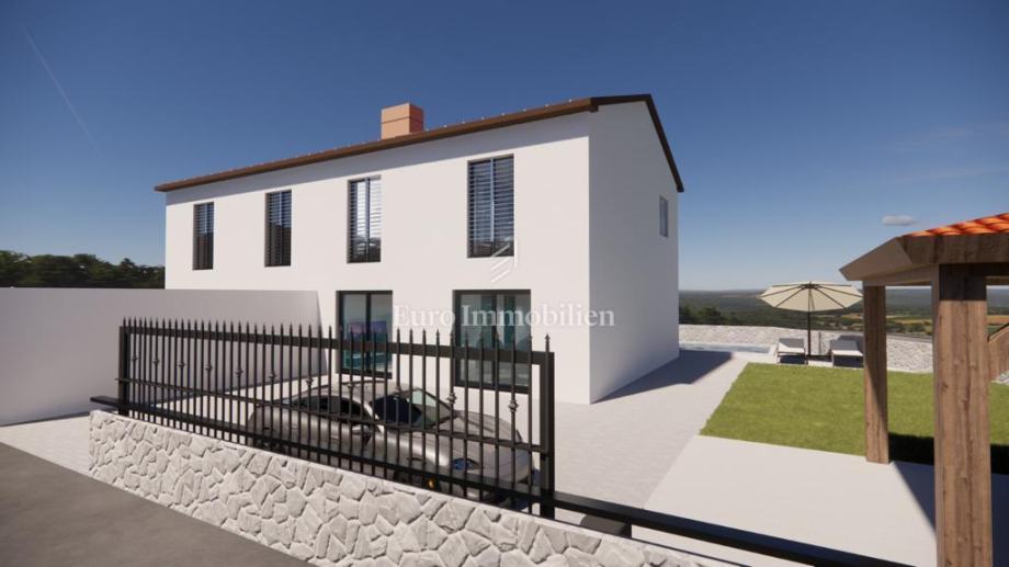 Prodaje se dvojna kuća s bazenom u roh bau fazi, na mirnoj lokaciji u okolici Vrbnika na otoku Krku.