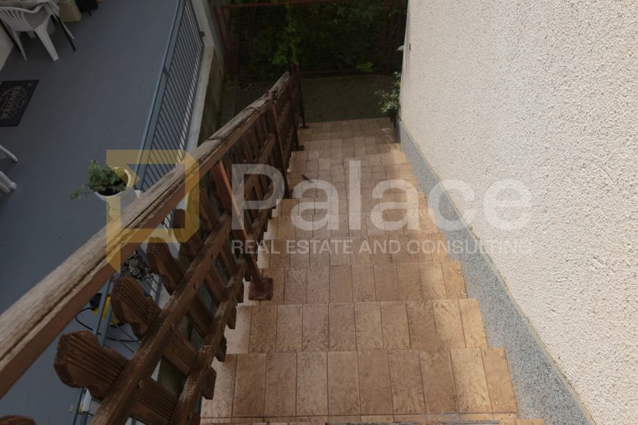 Kuća se sastoji od dvije etaže. U prizemlju stan površine 31 m2 koji se sastoji od predsoblja, kupaonice, kuhinje s blagovaonicom te sobom koja ima izlaz na terasu površine 13 m2. Vanjske stepenice vode na gornju etažu gdje je stan koji se sastoji od kupaonice, kuhinje i blagovaonice i sobe te ima unutarnje stepenice za potkrovlje površine 28 m2 te terasu površine 10 m2.