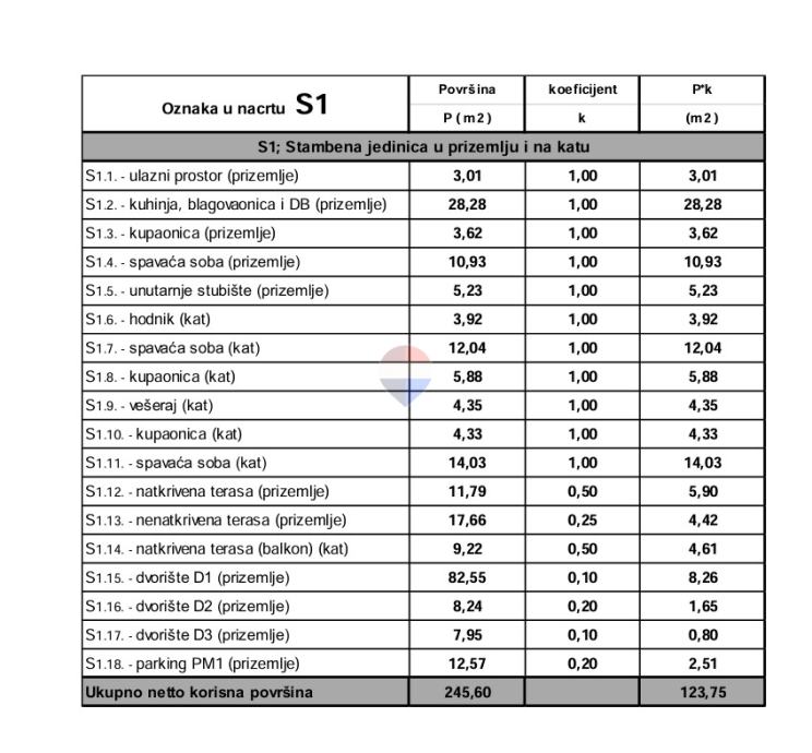 Dvoetažni stan S1 netto površine od 123,75 m2 .