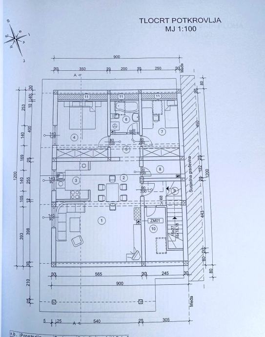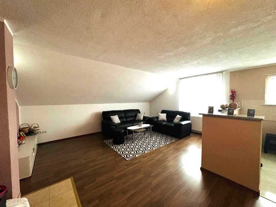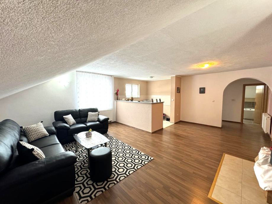 Potkrovlje netto površine 89,30m2 sastoji se od predprostora, prostranog dnevnog boravka, kuhinje i blagovaonice, spremišta, 2 spavaće sobe i kupaonice.