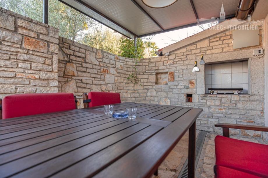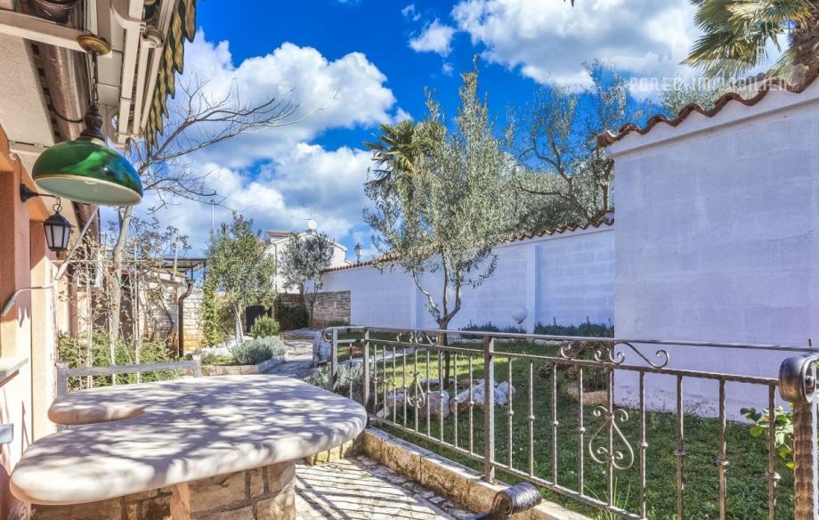 Okućnica je lijepo uređena u mediteranskom stilu i pruža dodatni ugođaj za boravak na otvorenom.