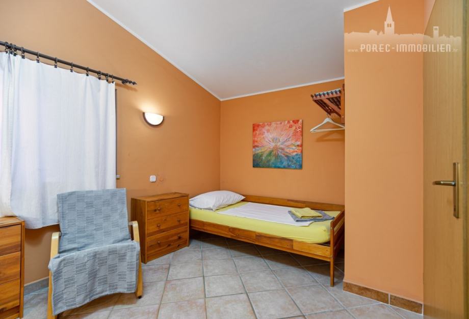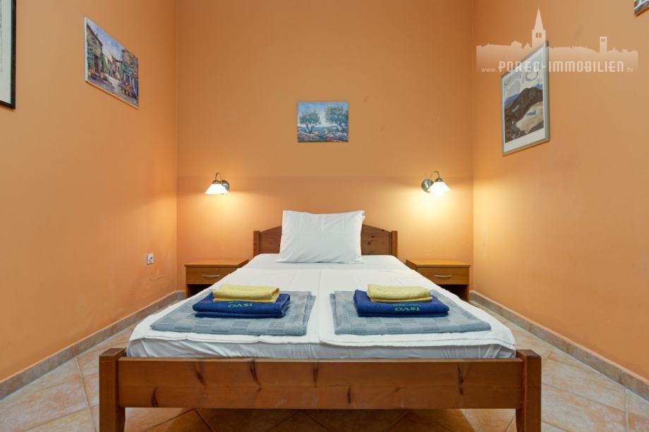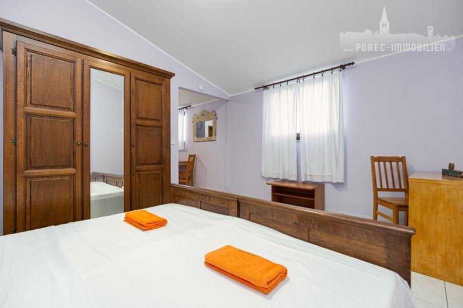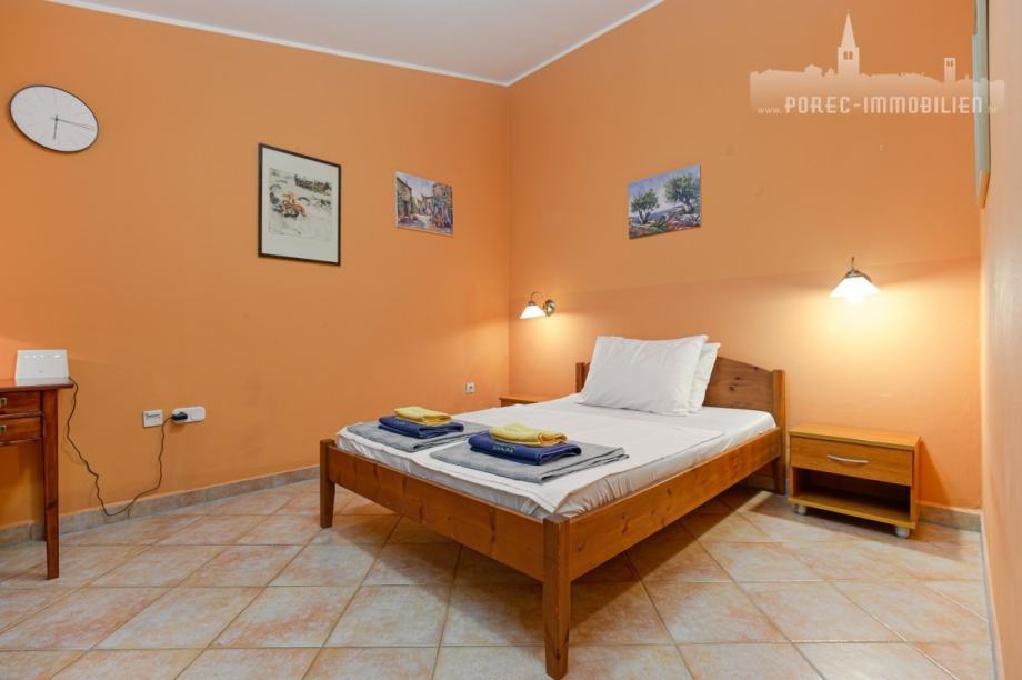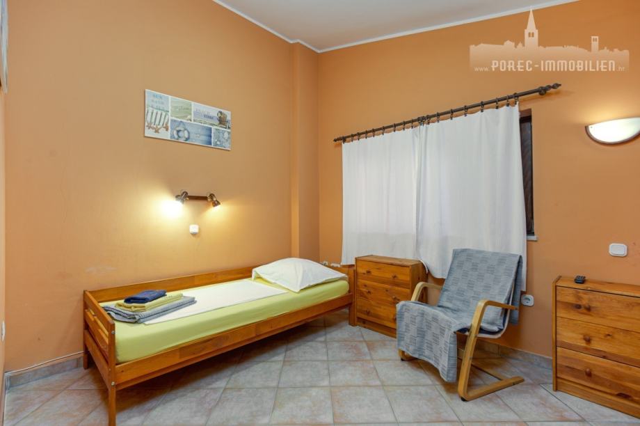 Na prodaju je prizemna dvojna kuća smještena u mirnom dijelu grada, svega nekoliko minuta hoda od mora i centra Poreča. Ova nekretnina predstavlja izvrsnu investicijsku priliku s već uhodanim turističkim najmom.