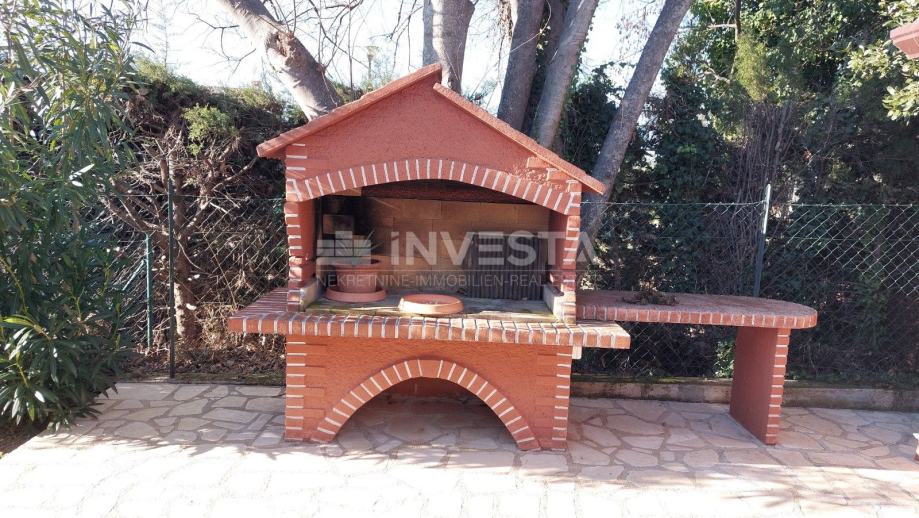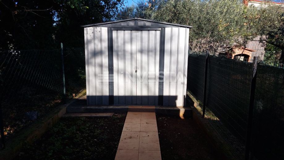 Okućnica je pažljivo uređena i osmišljena kao prostor za druženje i uživanje na otvorenom. Natkriveni kutak za objedovanje, roštilj i vrtna kućica stvaraju savršeno okruženje za ljetne večeri s obitelji i prijateljima. Kući pripadaju tri privatna parkirna mjesta. Kuća se prodaje potpuno namještena sa namještajem i opremom.