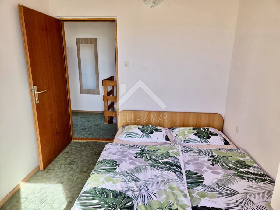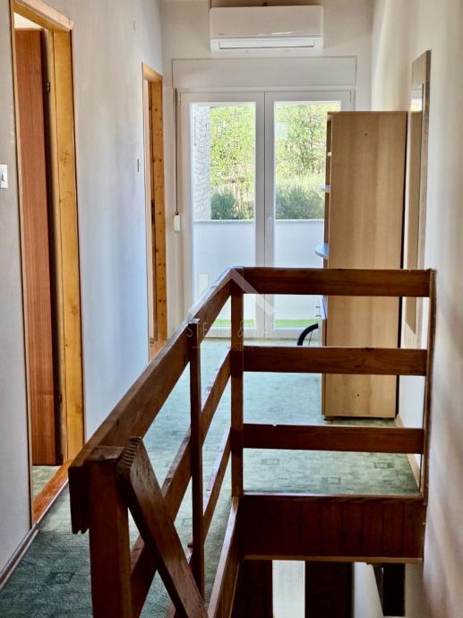 Unutarnje stepenice vode na kat kuće gdje se nalaze 3 spavaće sobe, kupaona i terasa. Sa terase se pruža pogled na more.
