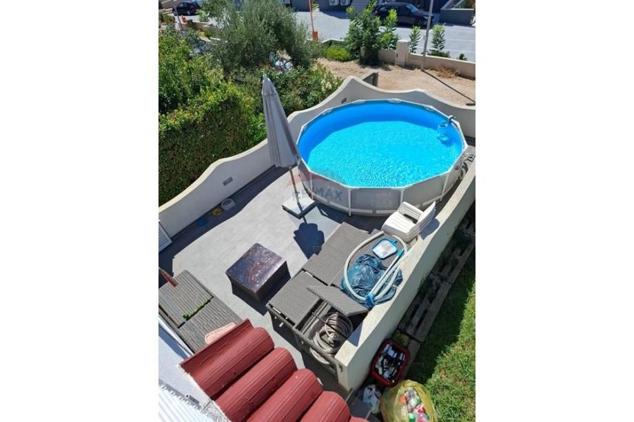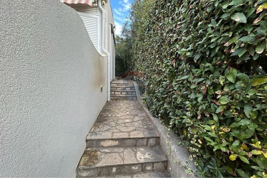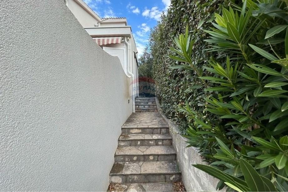 Kuća je podijeljena na dva zasebna apartmana te posjeduje garažu i dodatna parkirna mjesta.