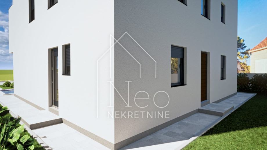 Kuća je trenutno u fazi gradnje, gradi se visokokvalitetnim materijalima i po posljednjim standardima gradnje. Od opreme izdvajamo stiropor fasada, stolariju u antracit boji, troslojno staklo, električni podizači roleta, komarnici, klima u svakoj prostoriiji, električno podno grijanje u cijeloj kući, kvalitetne podne obloge.