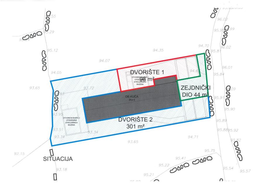 Na uređenoj okućnici od 98 m2 nalazi se bazen veličine 17 m2 sa strojarnicom i spremištem od 10 m2.