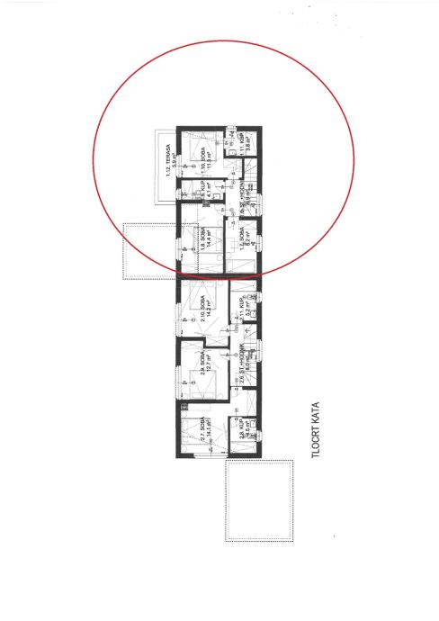 Kuća se sastoji od dvije etaže, ukupne stambene površine 112,50 m2. U prizemlju se nalazi dnevni boravak s izlazom na prostranu natkrivenu terasu od 10,10 m2 i pristupom sunčalištu i bazenu, kuhinja s blagovaonicom, hodnik, toalet te stubište koje vodi na kat gdje se nalazi hodnik, tri spavaće sobe, dvije kupaonice i terasa veličine 5,90 m2 sa otvorenim pogledom na more.