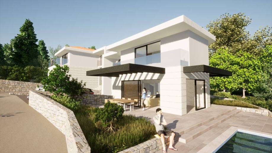 Novo u ponudi-luksuzna dvojna kuća u Vrbniku, sa prekrasnim pogledom na more. Ovaj dio dvojnog objekta je neto površine 160m2, sa velikom okućnicom od 250m2. Ovaj dvojni objekt ima 4 spavaće sobe, 4 kupaonice, WC te blagovaonicu i kuhinju. Također, u sklopu okućnice nalazi se i bazen. Planirani dovršetak projekta je u 2024. godini.