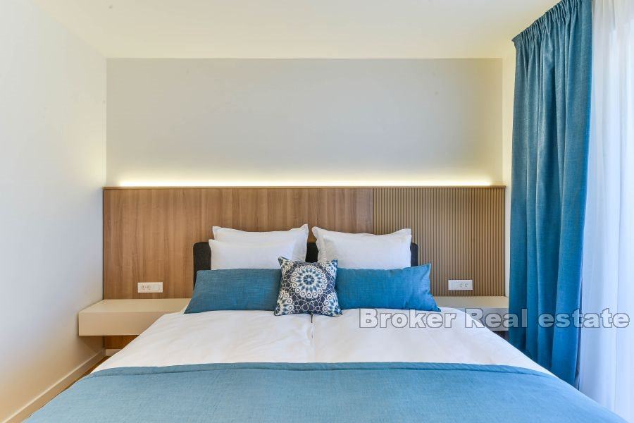 Pri gradnji ove nekretnine korišten je najbolji materijal i suvremene tehnike. Nekretnina je udaljena 40 m od najbliže plaže, te se nalaz u blizini svih sadržaja potrebnih za svakodnevni život kao što su kafići, dućani, šetnice i restorani.