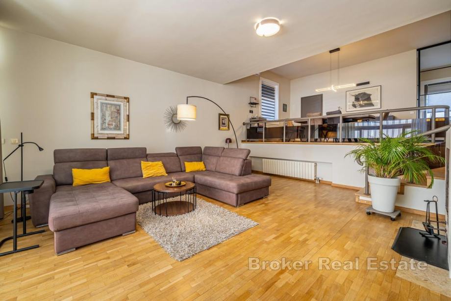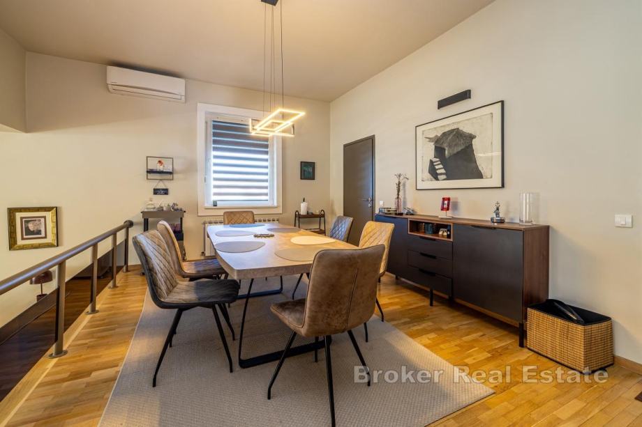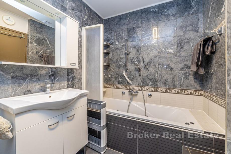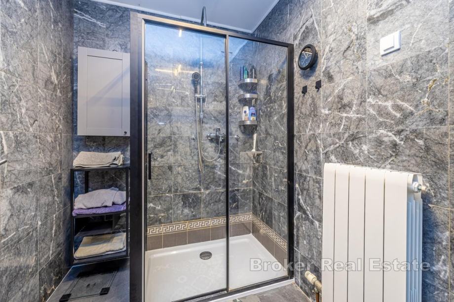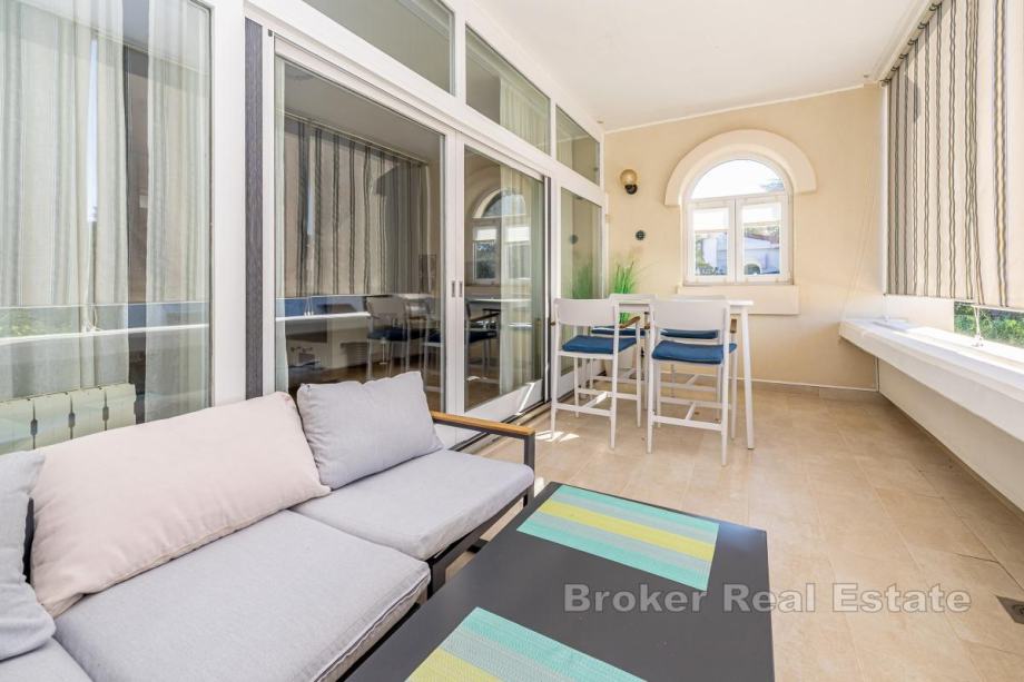 Nekretnina je ukusno renovirana 2020. godine te se od tada koristila isključivo kao sezonski najam, što je čini spremnom za useljenje. Uređeno i pažljivo hortikulturno oblikovano dvorište površine 826 m² nudi više prostora za sjedenje osmišljenih kako bi se u potpunosti iskoristio panoramski ambijent, kao i izravan pristup pješačkoj stazi koja vodi ravno do kristalno čistog mora.
