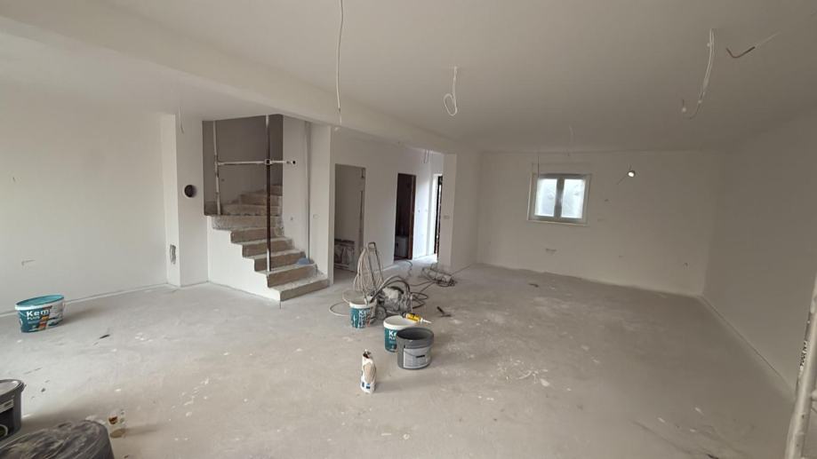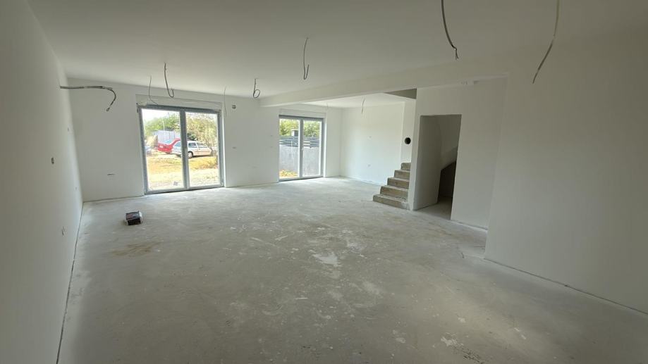 U Vrbniku, Garica, na prekrasnom otoku Krku, nudimo na prodaju dvojnu kuću u fazi gradnje, smještenu na mirnoj lokaciji. Kuća se prostire na 117 m2 i sastoji se od prizemlja i prvog kata. Prizemlje uključuje prostrani dnevni boravak, kuhinju s blagovaonicom, toalet, hodnik i spremište. Na prvom katu nalaze se tri udobne spavaće sobe i dvije kupaonice, idealne za obitelj ili goste. Ova nekretnina izgrađena je s pažnjom na kvalitetu i funkcionalnost. Kuća ima tri parkirna mjesta, što je savršeno za obitelj s više automobila ili za posjetitelje. Okružena je velikim vrtom od 300 m2, idealnim za opuštanje i uživanje na otvorenom. Smještena je na udaljenosti od 4000 metara od mora i centra Vrbnika, što omogućava miran život s brzim pristupom svim potrebnim sadržajima. Ova nekretnina predstavlja izvrsnu priliku za sve koji traže dom na otoku Krku, kombinirajući moderan dizajn s tradicionalnim šarmom ove predivne lokacije.