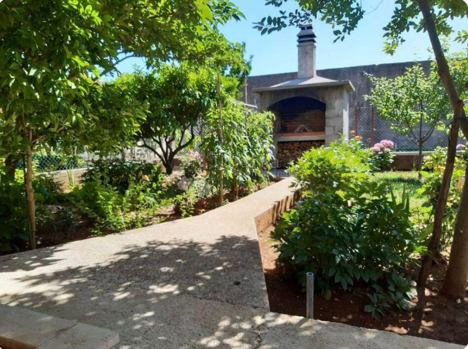 Okućnica površine 159 m² uređena je i njegovana, s vrtom, roštiljem te dva privatna parkirna mjesta unutar ograđenog dvorišta.