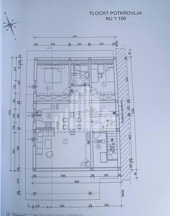 Potkrovlje netto površine 89,30m2 sastoji se od predprostora, prostranog dnevnog boravka, kuhinje i blagovaonice, spremišta, 2 spavaće sobe i kupaonice.