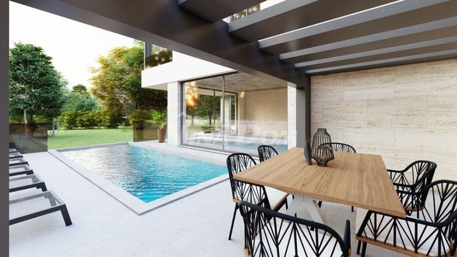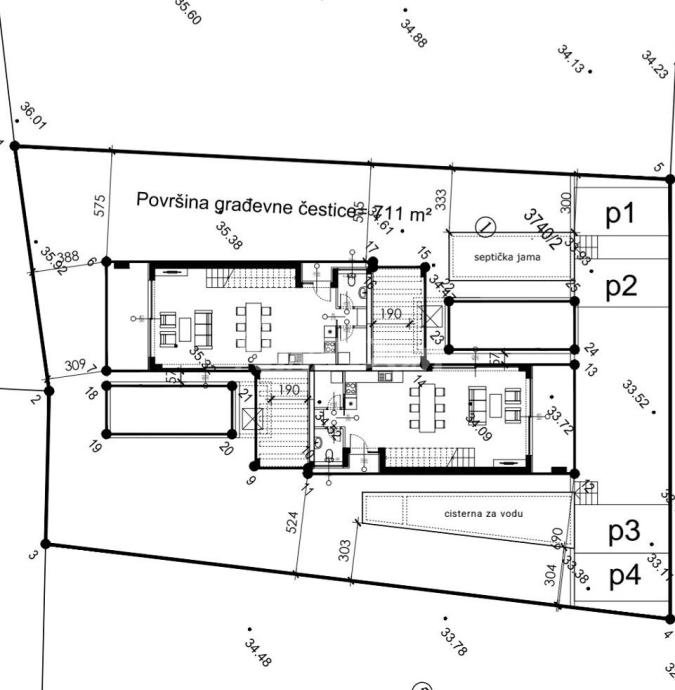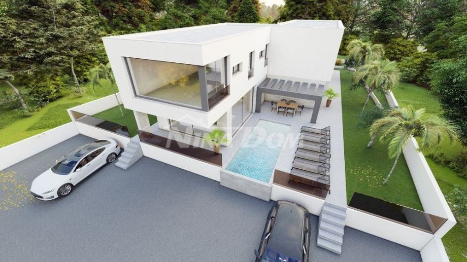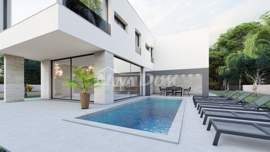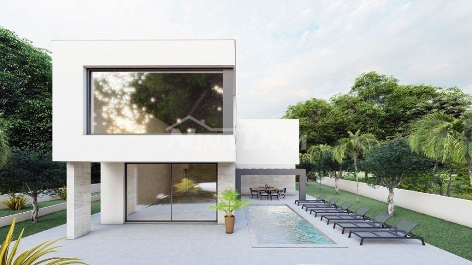 Vila dvojnica s bazenom, smještena je u mirnom dijelu naselja okružena s dosta zelenila.