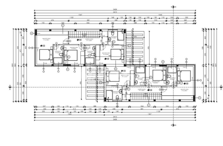 Na katu su smještene tri spavaće sobe svaka sa svojom kupaonicom, hodnik.