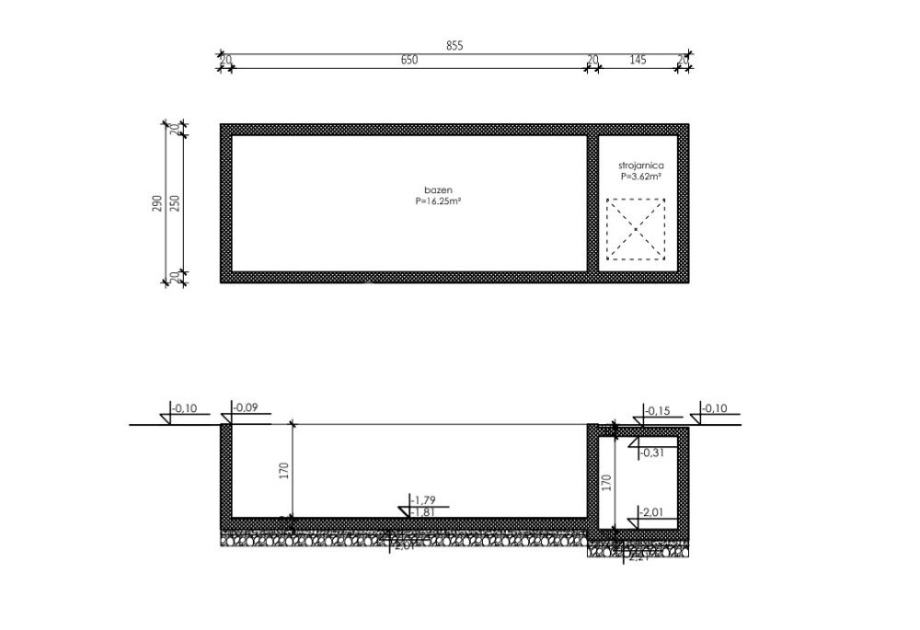 Okućnica po projektnoj dokumentaciji uređena s bazenom od 16.25 m2.