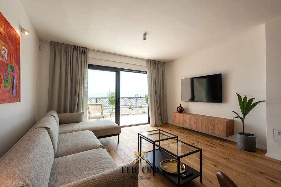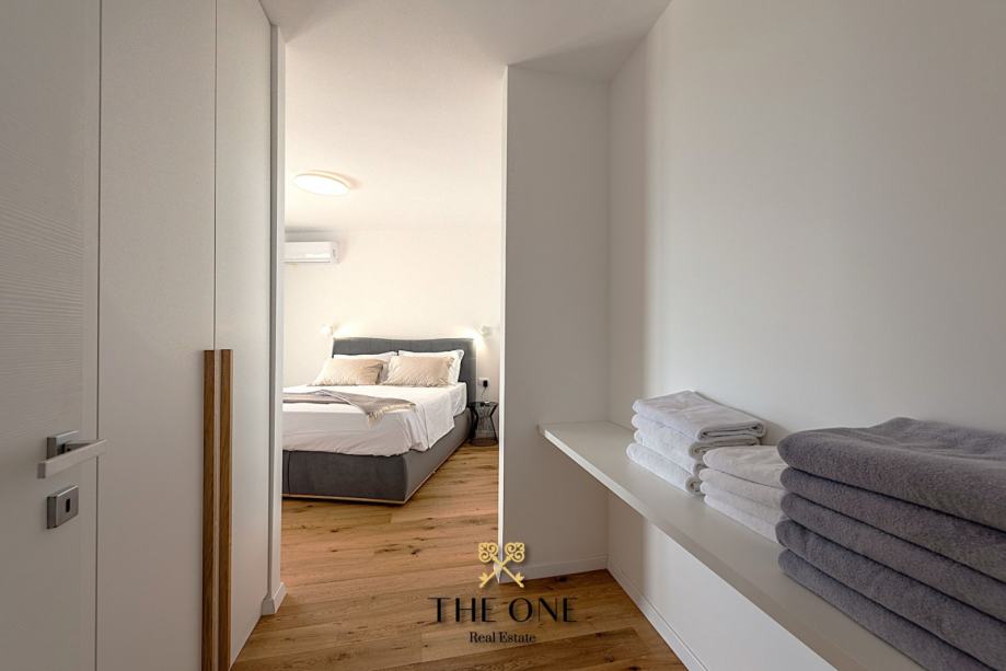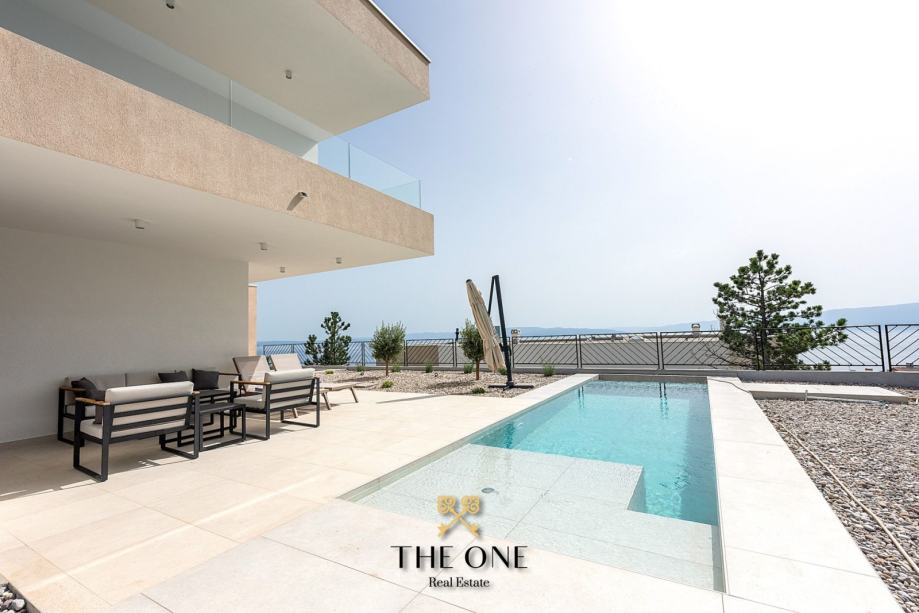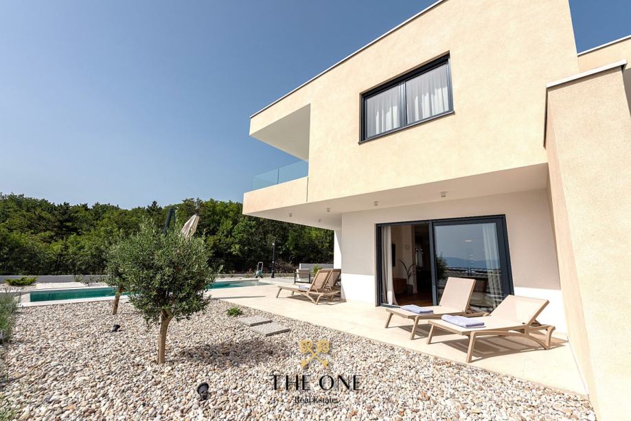 Predivna dvojna vila u novogradnji, izgrađena 2022. godine, smještena je na uzvisini, pružajući nevjerojatan pogled na more i okolno zelenilo, te mirnoću koja dolazi s boravkom u potpuno novom naselju.