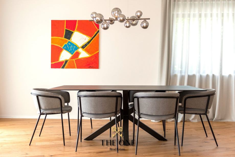Vila je dizajnirana u 'open space konceptu' koji uključuje prostrani dnevni boravak, modernu kuhinju i elegantnu blagovaonicu. Iz dnevnog boravka izlazi se na natkrivenu terasu koja vodi do bazena, savršenog za opuštanje i uživanje u toplim danima. Na istoj etaži nalazi se i manje kupatilo za dodatnu praktičnost.