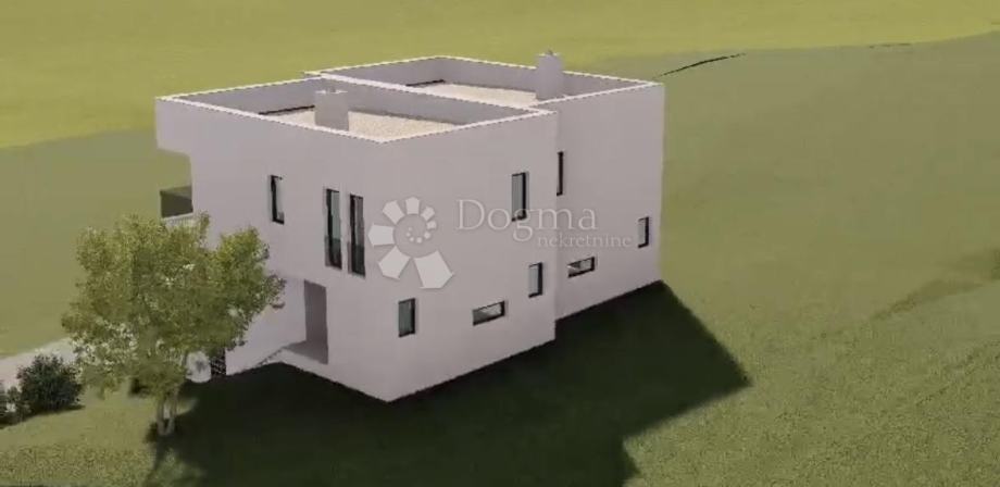 Ova suvremena vila s čistim linijama i ravnim krovom ističe se modernim dizajnom te pametnim rasporedom prostora. Vila se sastoji od dva stana. Dvoetažna kompozicija svakog stana, staklene ograde koje povezuju interijer sa prirodom, natkrivene terase i elegantno integrirane garaže pružaju estetski sklad. Svakom stanu pripada privatna garaža sa dva parkirna mjesta te vlastita uređena okućnica.