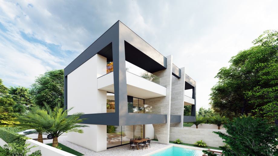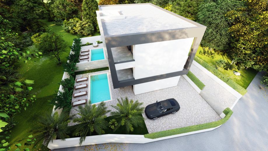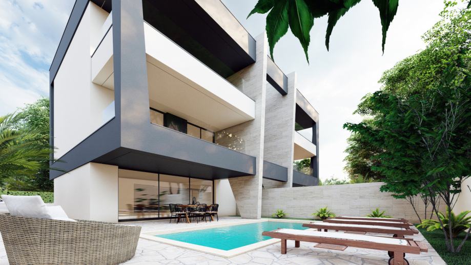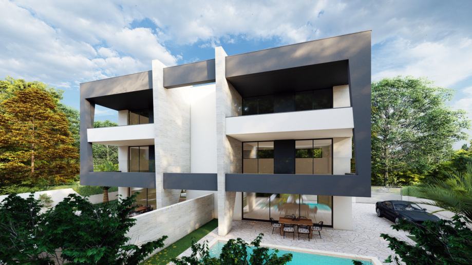 Predstavljamo luksuznu duplex villu neto površine 232 m2, na parceli od 697 m2, s bazenom od 20 m2 koja se gradi u modernom kompleksu od 6 villa.
