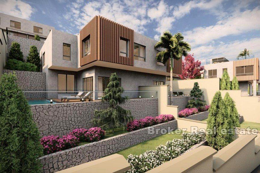 Na prodaju je dvojna vila u izgradnji s predivnim pogledom na more. Vila će biti smještena na sjevernoj strani otoka Hvara, na uzvišenoj i mirnoj lokaciji, u samom centru manjeg mjesta. Biti će okružena sličnim novoizgrađenim vilama te stambenim zgradama, sjeverne orijentacije i luksuznog dizajna.