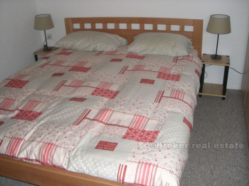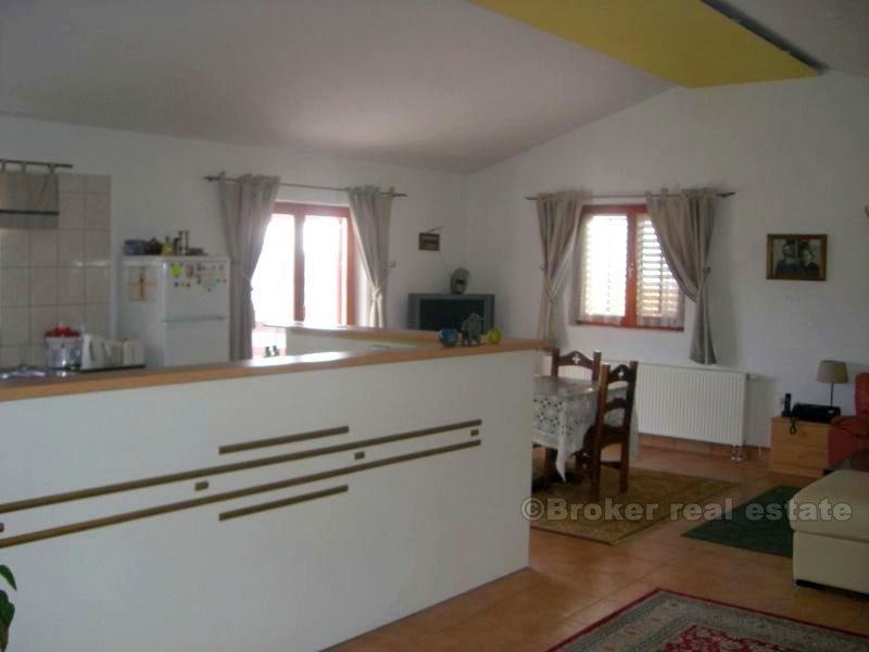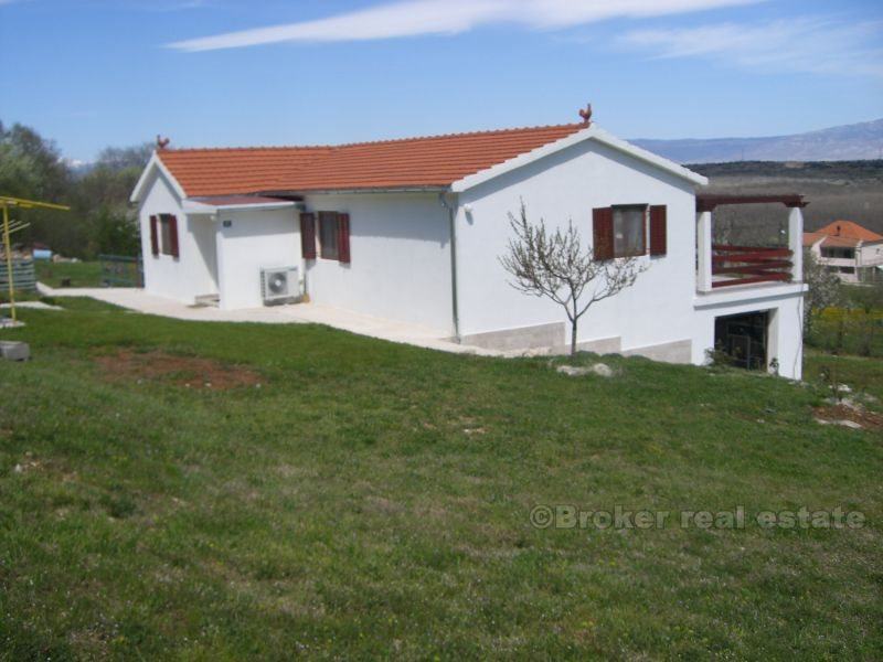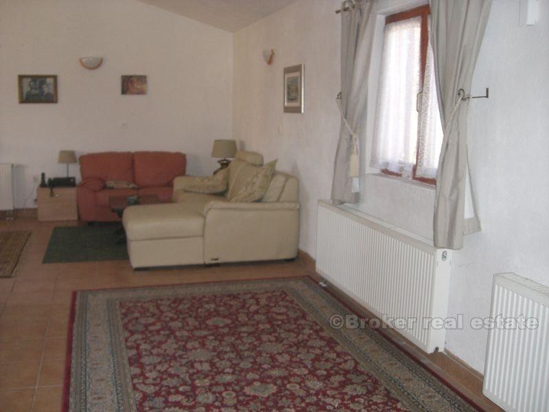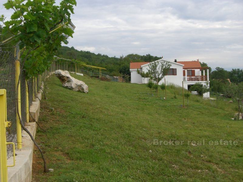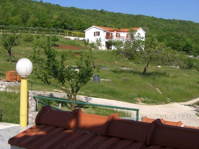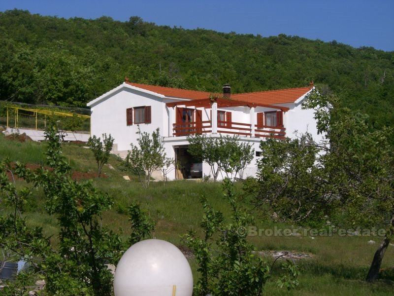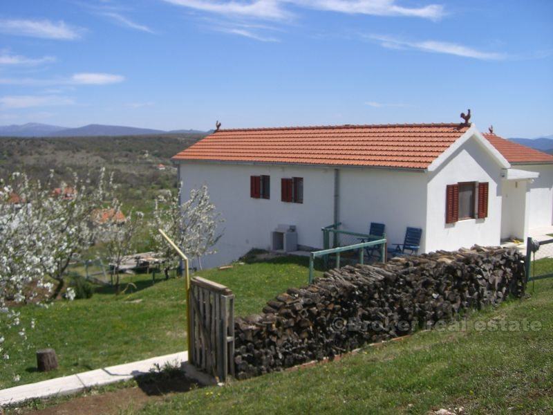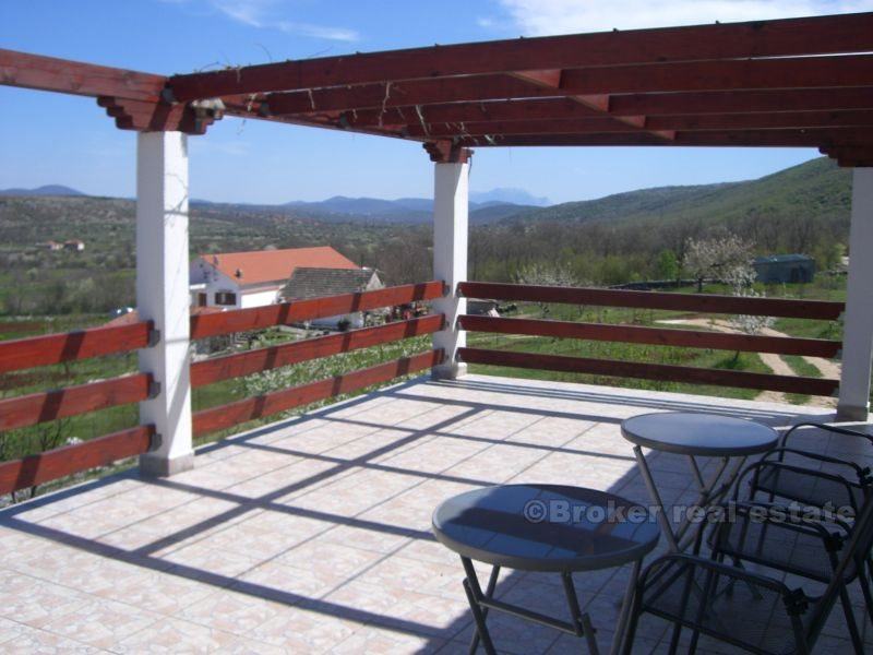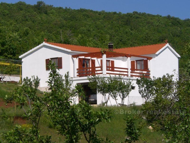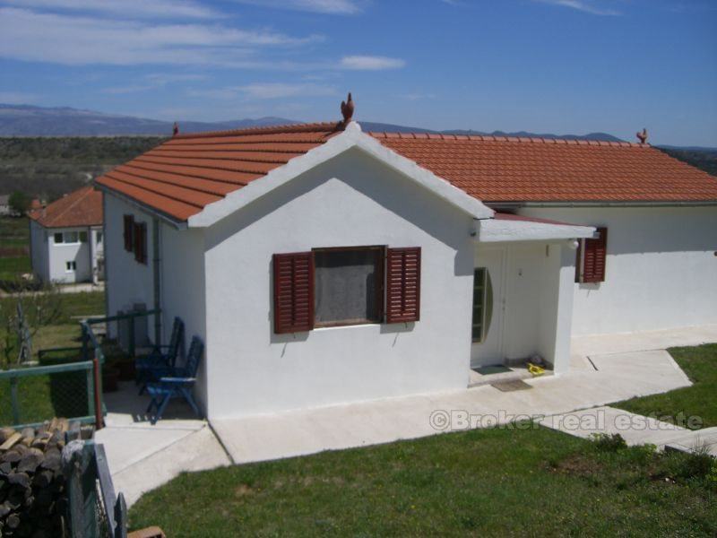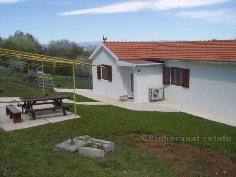 Samostojeća kuća, u okolici Trilja, sa 2 kata i balkonom (32m2) s prekrasnim pogledom na prirodu. 24 km od Splita, u mirnom i tihom mjestu, na zemljištu od 1500 m2. Postoje 2 ulaza na zemljište.