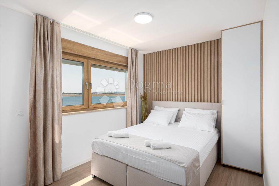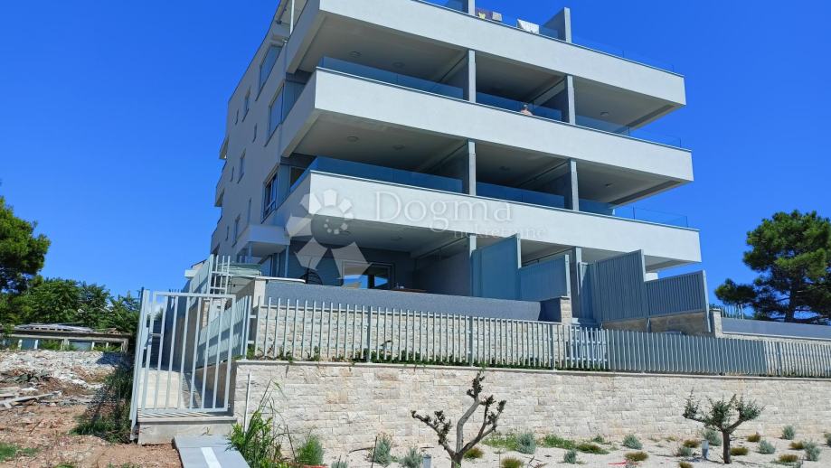 Na prvoj etaži, dočekuje vas raskošna atmosfera sa dvije prekrasne sobe, svaka s vlastitom kupaonicom, prostranim hodnikom i elegantnim stubištem koje vodi na drugu etažu. Tu, na drugoj etaži, očaravaju vas moderno uređena kuhinja, prostrani dnevni boravak i blagovaonica te udobni WC. Uz to, možete uživati u spektakularnom pogledu na more iz svih prostorija apartmana, koji će vam oduzeti dah.