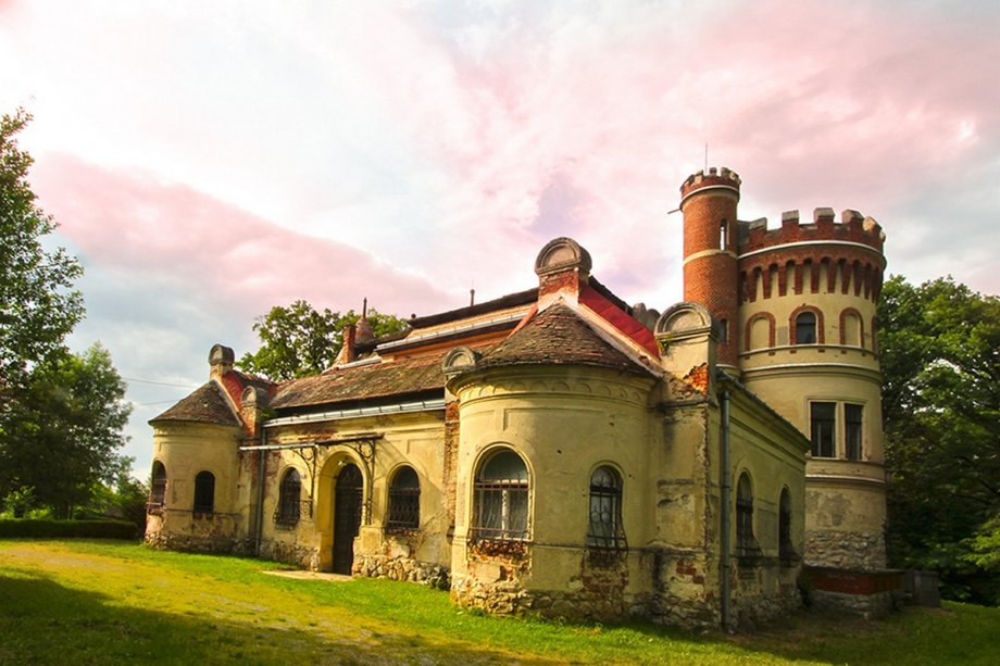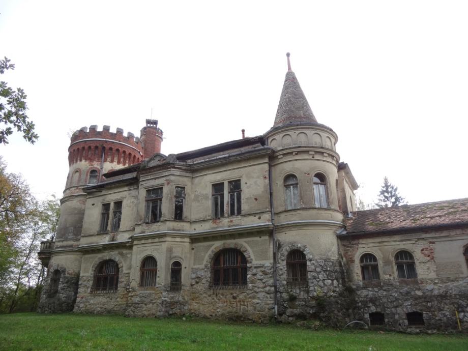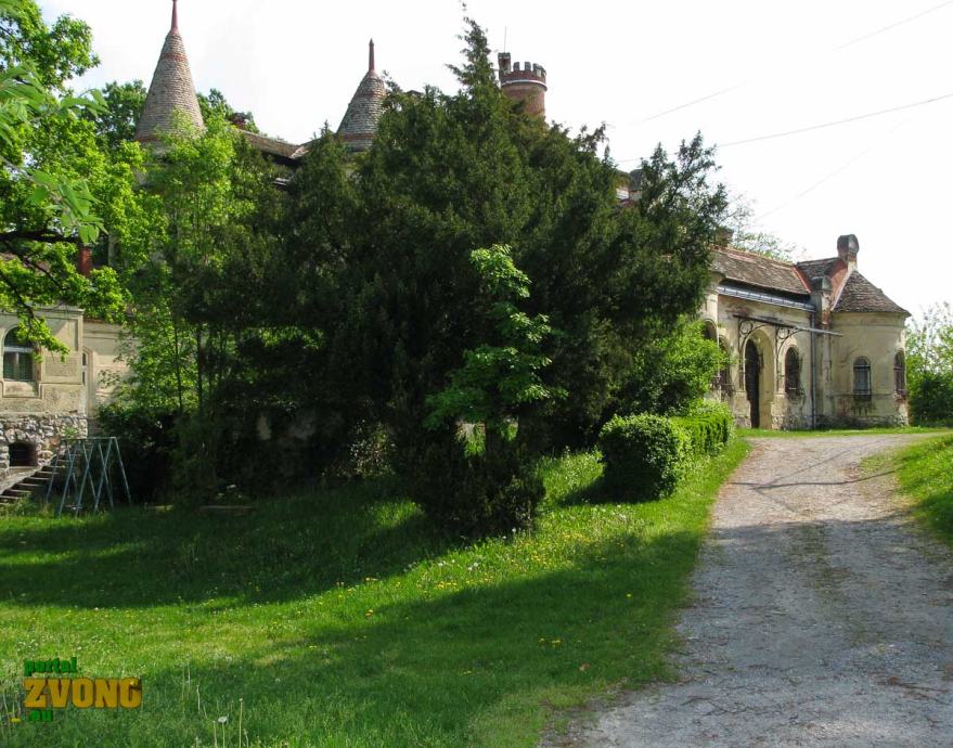 Cijeli dvor graden je opekom i obradenim kamenom i ostavlja dojam pseudogoticke-secesionisticke jednokatne gradevine. Istice se složenim tlocrtom, razlicitim visinama krovišta, dvjema otvorenim kulama - vidikovcima na istoku i dvjema manjim kulama koje završavaju stožastim krovom i pokrovom od biber-crijepa. Prozorski otvori su polukružni, ostakljeni ornament staklom. U dvorcu je više manjih i dvije velike prostorije.