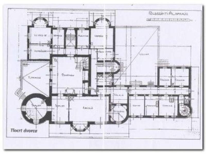 Neuobicajena arhitektonska rješenja Dvor su projektirali i izgradili madžarski arhitekti Foerk Erno i Sandy Gyula. Opis iz kojeg donosimo dio prijevoda publicirali su u madžarskom casopisu Udruge inžinjera i gradevinara 1906. godine u Budimpešti: »Vlasnik, udovica Tükory Alajosz ciji nacrt dvora obznanjujemo, nam je naložio da izgradimo takovo zdanje koje ce izgledom odgovarati krasnoj okolini svojega posjeda, zvanog DIOSSZENTPAL (Orahov Sveti Pavao). Dvorac je trebao imati ozbiljan izgled, a prostorije su u njemu imale služiti više privremenome boravku (najviše za vrijeme lova), i zimi i ljeti. No nije smio odavati dojam ljetnikovca, ili lovackoga doma, vec gospodske kuce. Ovim smo uvjetima nastojali udovoljiti. Štujuci mišljenja naruciteljice i izvodaca, nismo gradevini željeli dati moderan izgled. Nismo upotrijebili ni povijesni stil, nego više nešto neuobicajeno«.