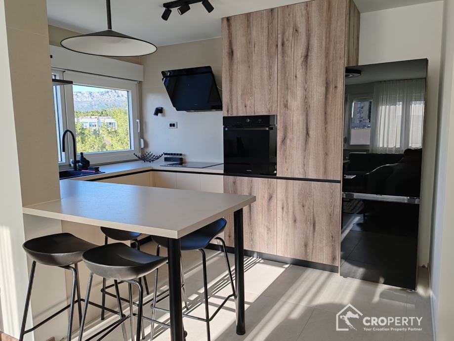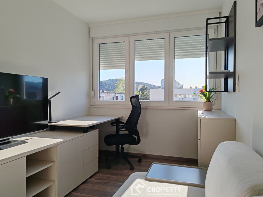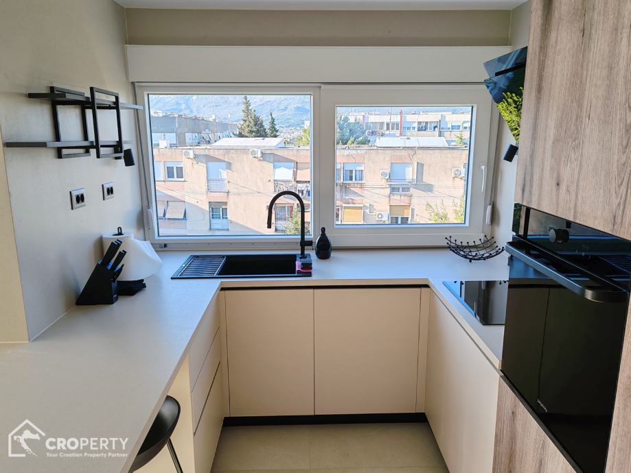 The northwestern orientation provides an abundance of natural light through large windows, illuminating the space throughout the day. The apartment offers views of two natural gems of Split – on one side the Marjan Forest Park, and on the other the Kozjak mountain.